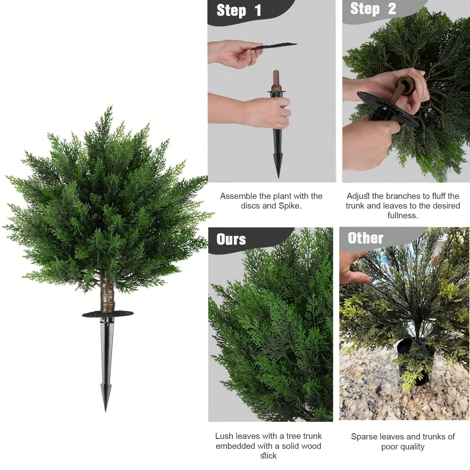 2026 New 2PCS 28.35" Artificial Cedar Topiary Ball Trees With Ground Spike Outdoor Indoor Faux Boxwood Bush Plants Artificial Cypress Topiary Tree Evergreen Shrubs Bushes For Room Front Porch Garden Backyard Decor