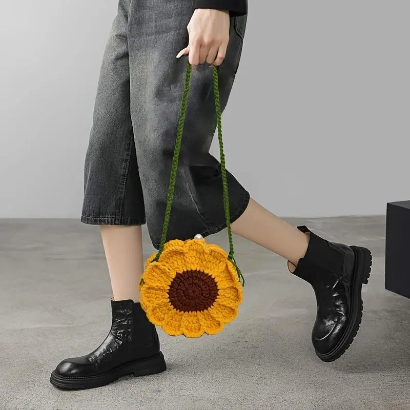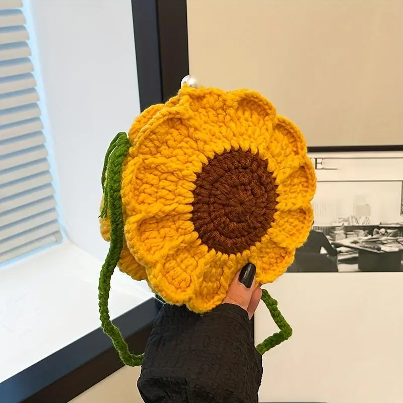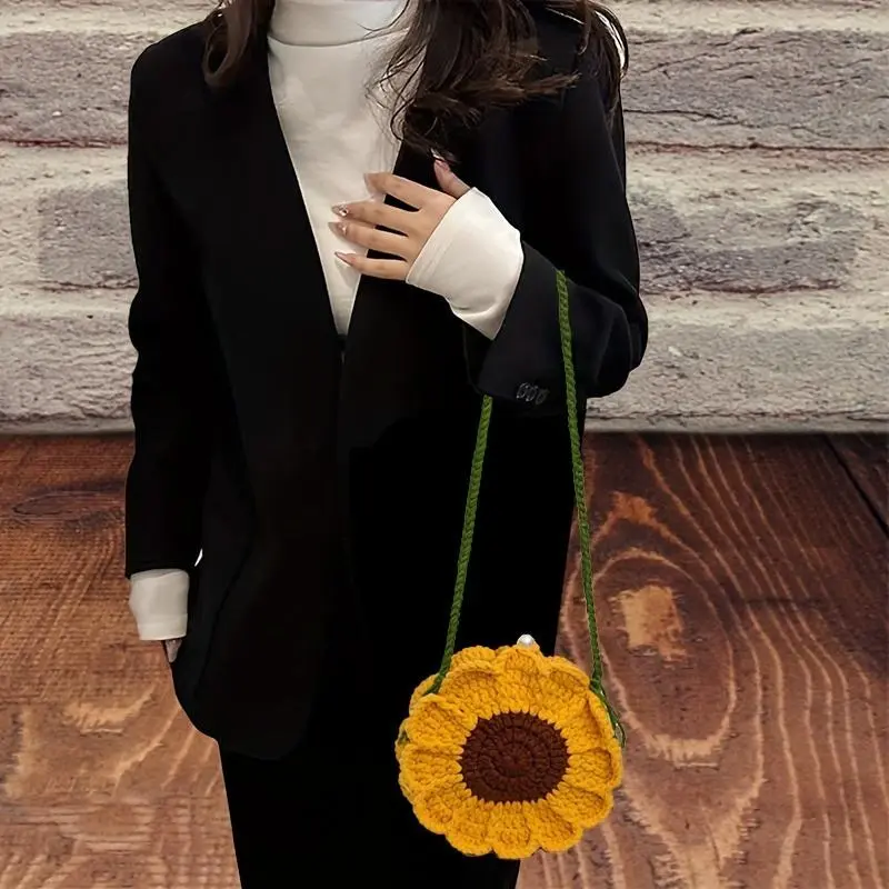 Chic Handmade Sunflower Crochet Crossbody Bag – Knit Floral Mini Purse for Women, Versatile for Daily/Party Occasions Valentine's Day
