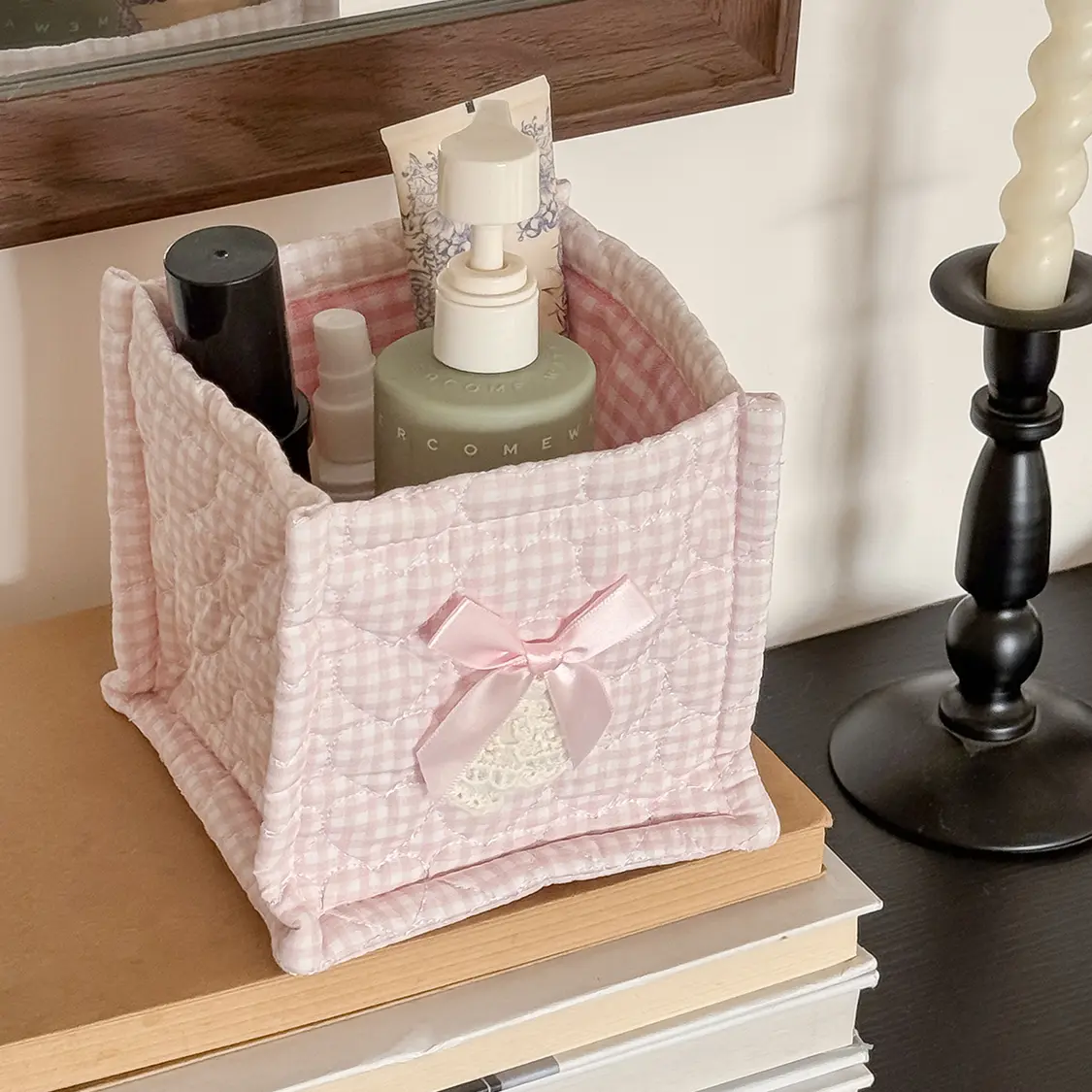 Lace Sweetie (Square Storage Basket) [Pink Checker