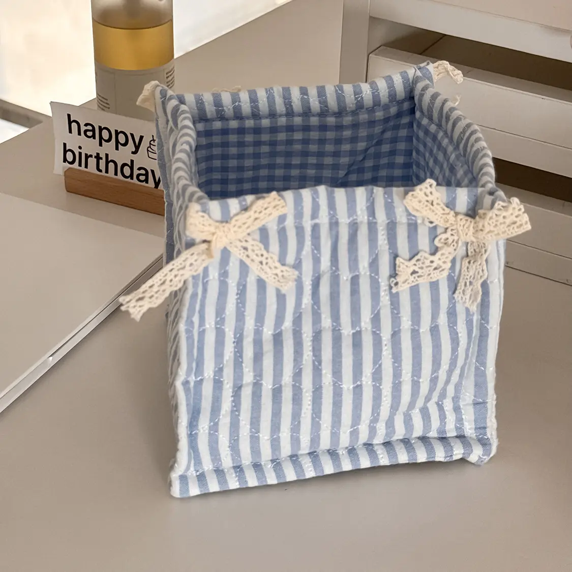 Lace Sweetie (Square Storage Basket) [Blue Checker