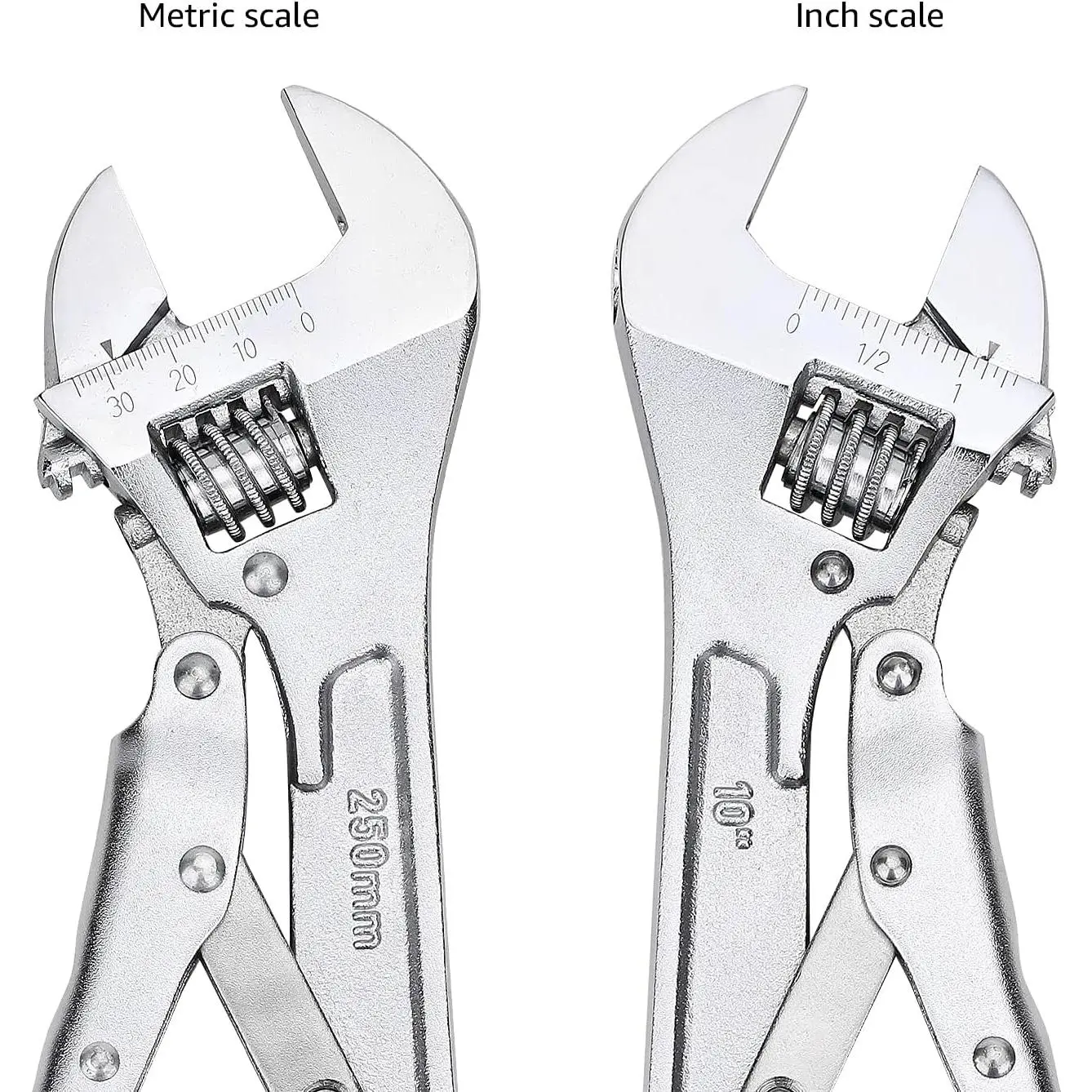 10 inch Locking Adjustable Wrench, Precision Machined, Rust Resistant, 2.7 inch x 0.75 inch