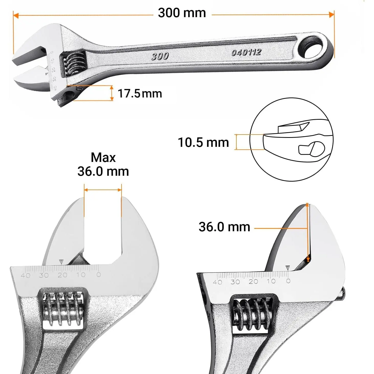 QUALITY CONSTRUCTION - Made with heat-treated chrome vanadium steel for lasting strength and durability.Built for durability in home and workshop useWIDE CALIBER - Up to 30mm opening caliber allows a great range of applications.designed for everyday household tasks such as plumbing fixes, furniture assembly, bike repairs, and garage work.A great toolkit essential for DIYers and homeowners.SMOOTH ADJUSTMENTS - High quality parts ensure smooth adjustments and tight grip to screws and nuts.Smooth worm gear provides consistent control and grip without slippage.LASER PRINTED SCALE - Easily measure nut/bolt size at the jaw of the wrench.Even with frequent use, the scale will not be damaged.VERSATILE USE - Ideal for a wide range of applications, from automotive repair to household maintenance.The wrenches feature hanging holes for easy storage, and the set fits neatly into standard toolboxes or bags.