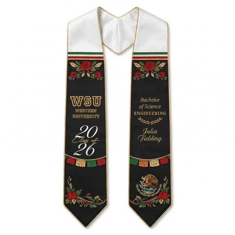 Custom Mexican Graduation Stole, Mexican Flag Graduation Sash 2026, Mexico Patte