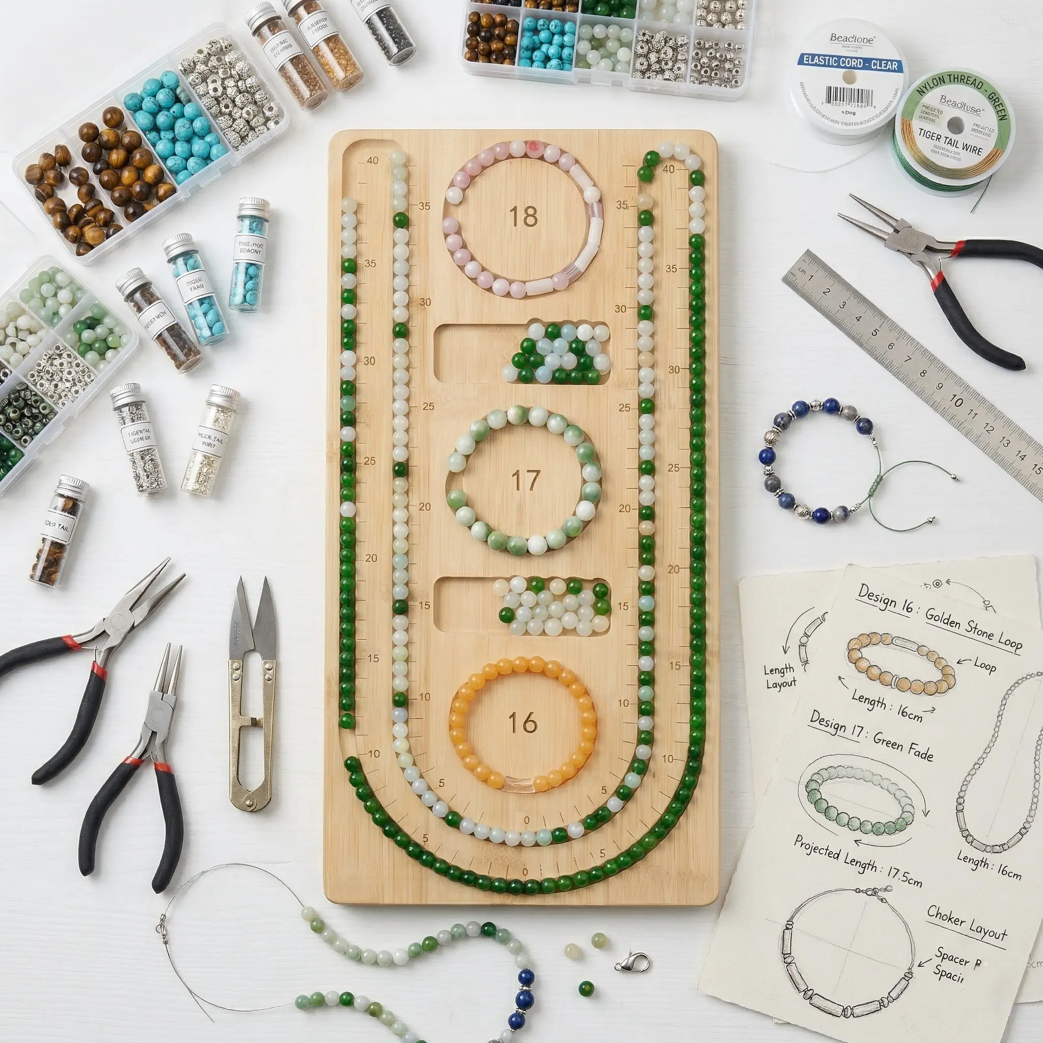 This professional bamboo bead board is a must-have jewelry making tool for any jewelry designer. Featuring precise measurement scales and sizing channels, it allows you to layout intricate necklace designs and bracelet patterns with absolute accuracy before stringing.