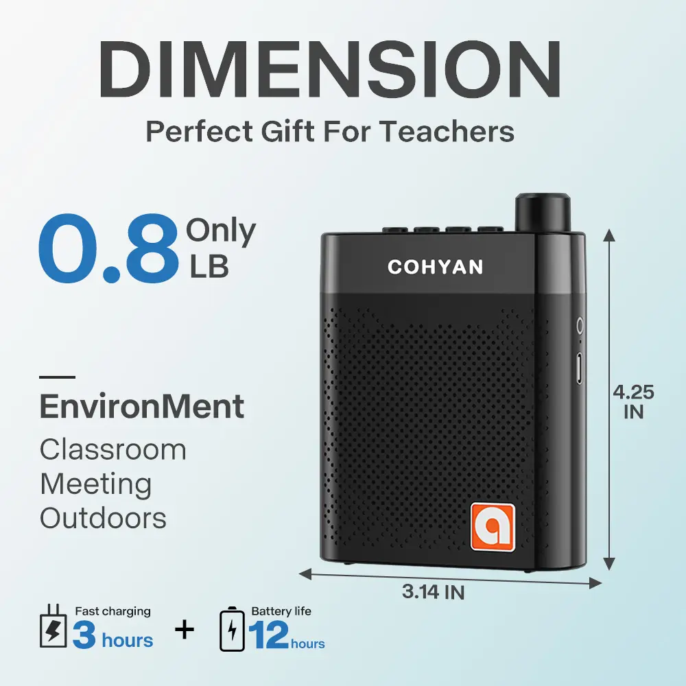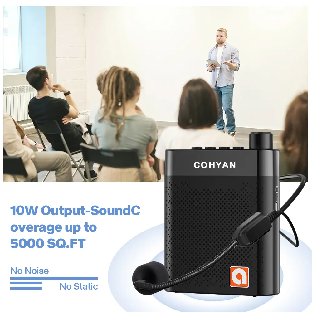 Use the 【COHYAN K6】 in various settings. It's perfect for classrooms, training sessions, yoga classes, speech events, meetings, and tour guiding. The compact design and noise-resistant microphone make it a versatile tool for any professional needing reliable audio solutions.