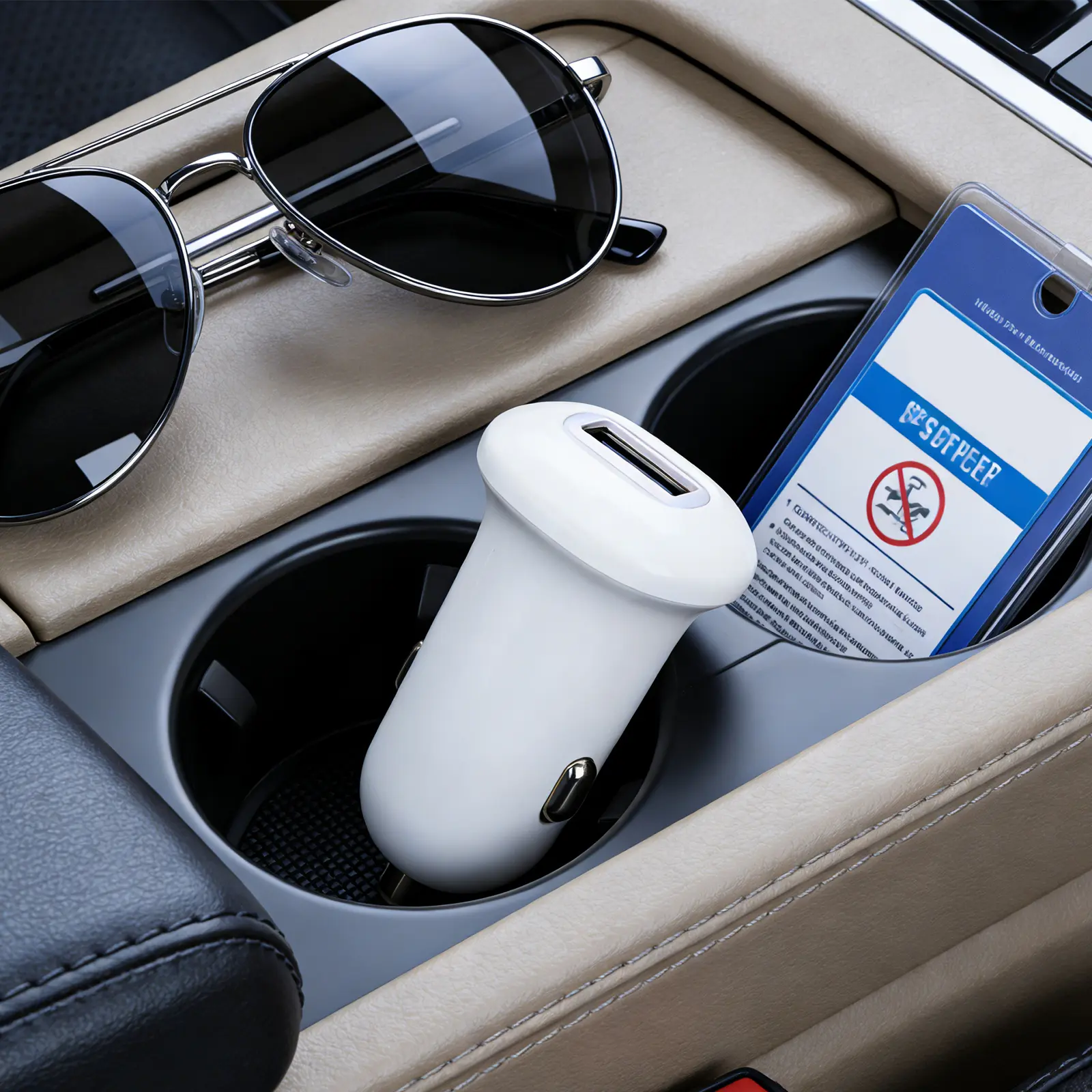 This 2.5-inch compact USB car charger features single-port fast charging, universal compatibility, stable output, and a mini design, ideal for charging smartphones and all mobile electronic devices in the car.