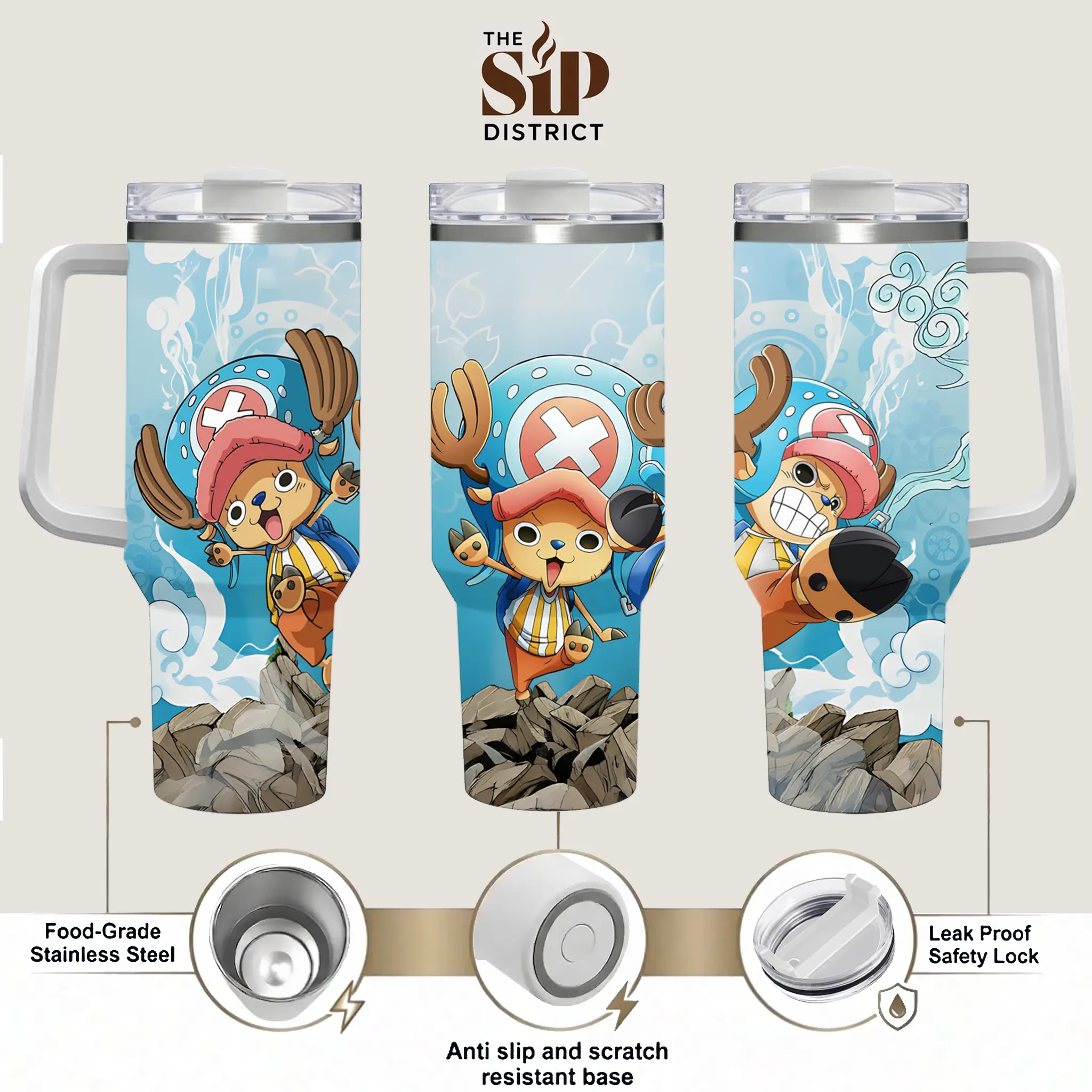 The Sip District.  Tony Tony Chopper Cotton Candy 20oz 40oz Handle Tumbler – Kawaii Anime Stainless Steel Travel Mug, Double Wall Vacuum Insulated Cup, Cute Otaku Drinkware, Large Iced Coffee Tumbler, Manga Lover Gift, Gaming Fan Merchandise