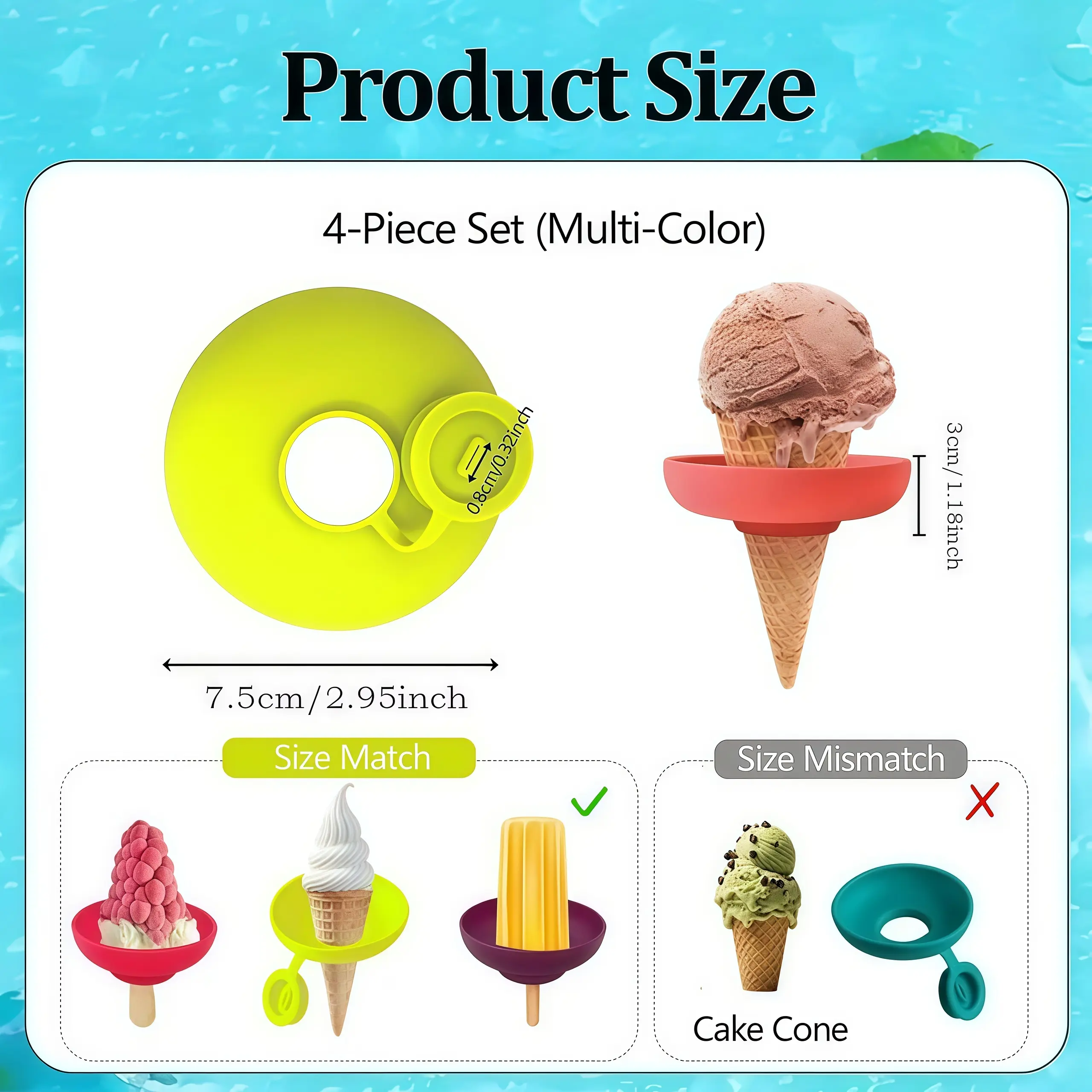 4pcs Silicone Ice Cream Holder Stand Set, Summer Popsicle Holder, Leak-Proof Cone Support with Drip Guard, Portable Youngsters's Ice Pop Mold Tray for On-The-Go Snacks - Dishwasher Safe