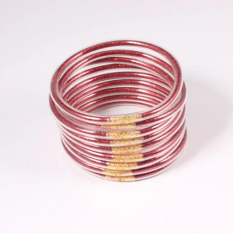 9-piece PVC jelly glitter bangle set