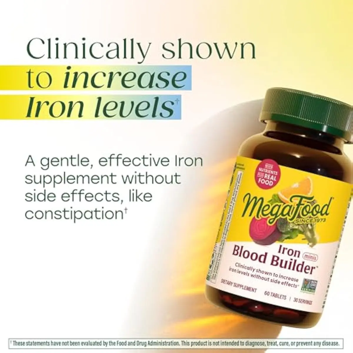 INCREASES IRON LEVELS: MegaFood Blood Builder was shown in a 8 week clinical trial to increase iron levels without constipation; an effective and gentle iron with vitamin C source that can be used as an iron supplement for women+