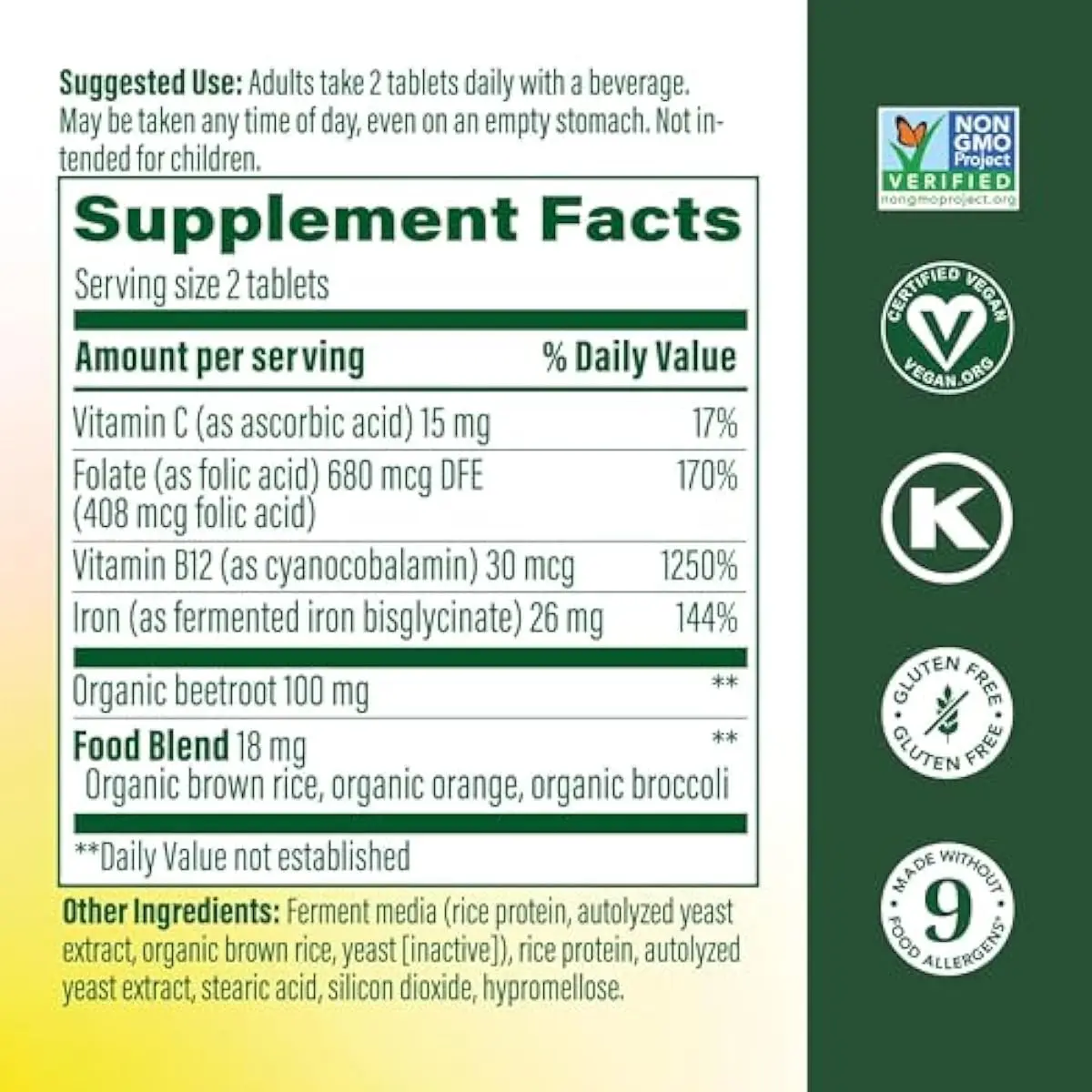 COMMITTED TO QUALITY: Tested for 150 chemical substances. Non-GMO Project verified, vegan, and kosher; The iron vitamin tablets are made without gluten, dairy, eggs, tree nuts, peanuts, soy, fish, shellfish or sesame in a GMP facility