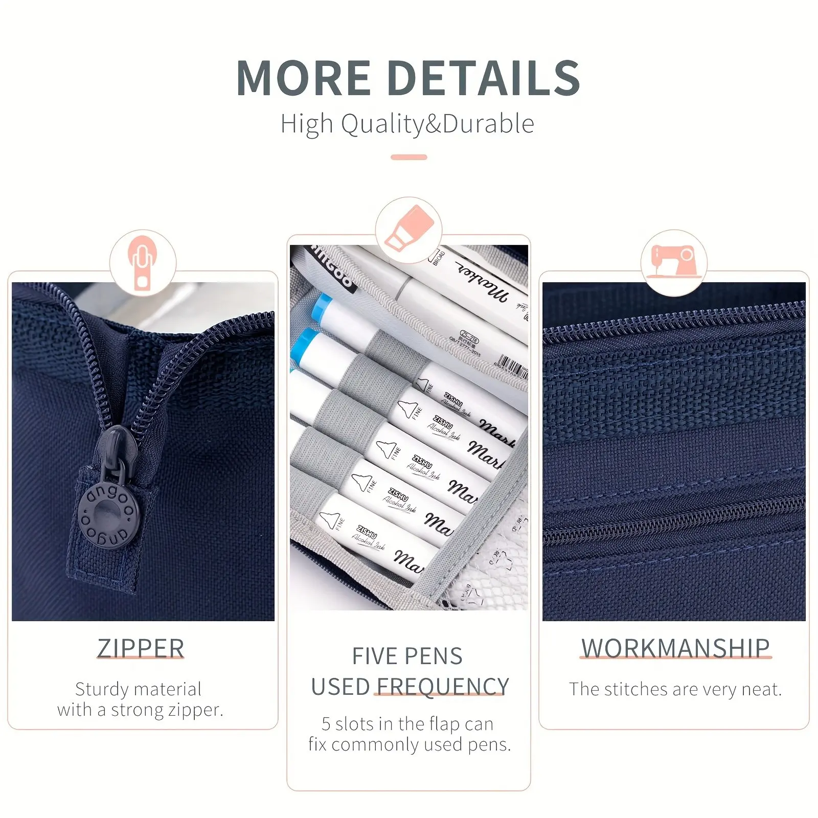 【High Capacity】: This pencil case offers ample space for stationery, school supplies, and office essentials.