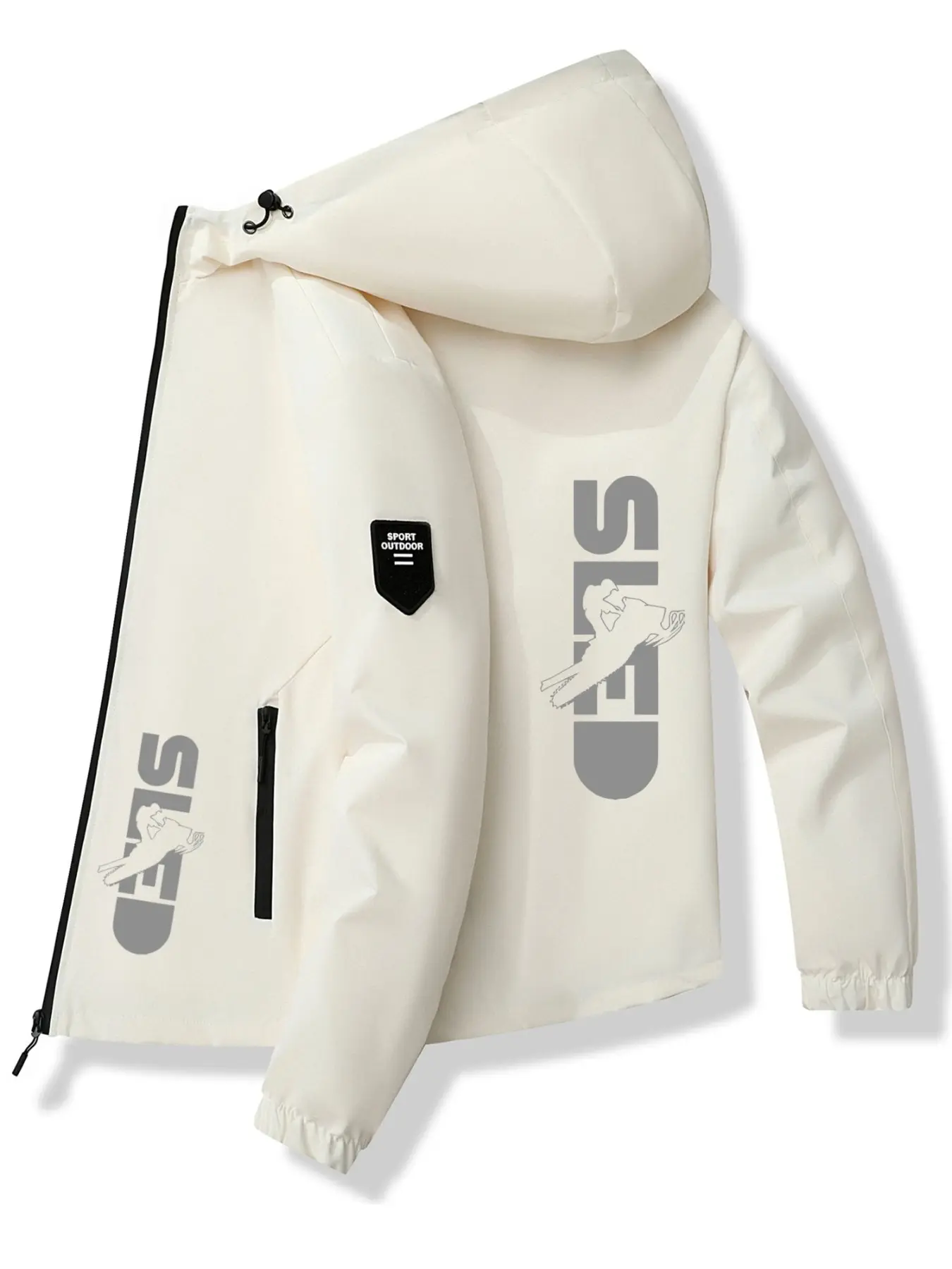 5. Snowmobile Letter Hoodie Jacket, Polyester Fabric, Stylish Print Design, Casual Slim Fit, Spring & Fall Fashion Outerwear