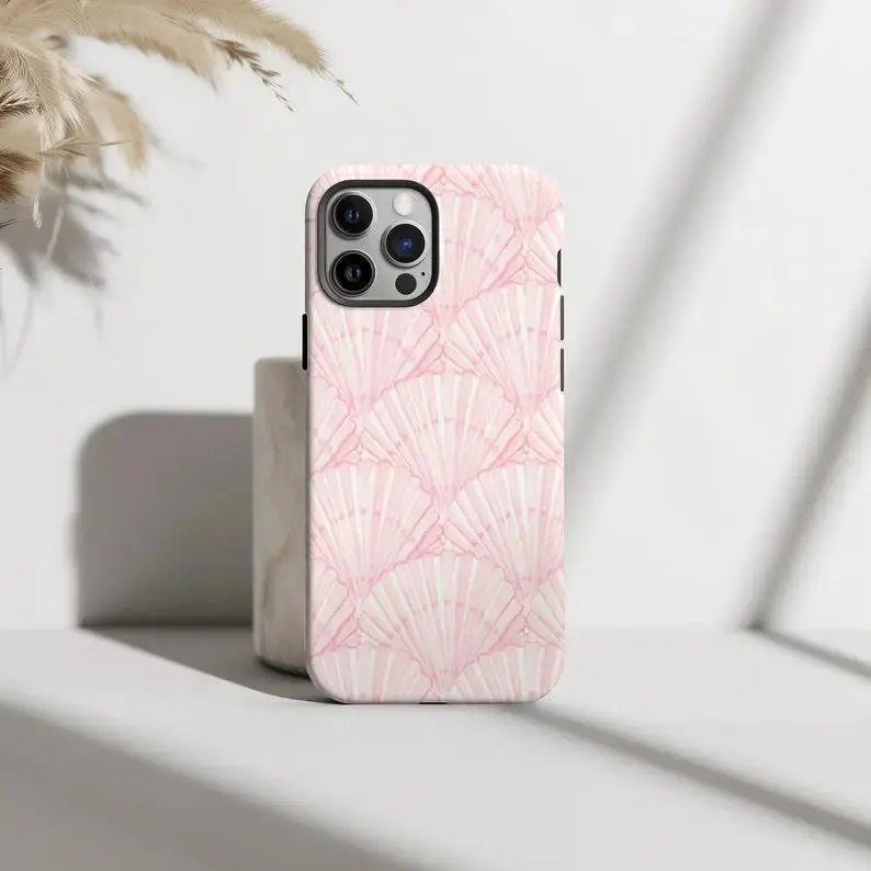 Pink Seashell Collage for Her Beachy Summer Aesthetic Premium Film 2 in 1 Phone Case - Durable, Shock Absorbing and Stylish Protection - Suitable for IPhone 17,16, 15, 14, 13, 12, 11, Plus, Pro, Pro Max, Perfect Birthday Gift for Friends.