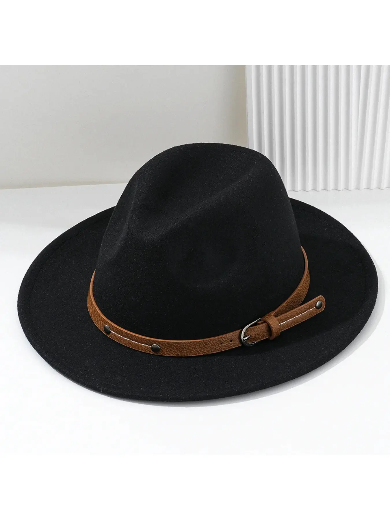 1PC Fashion Wool Fedora Hat Men Autumn Winter Wide Brim Jazz Cap Imitation Woolen Women Church Felt British Hat