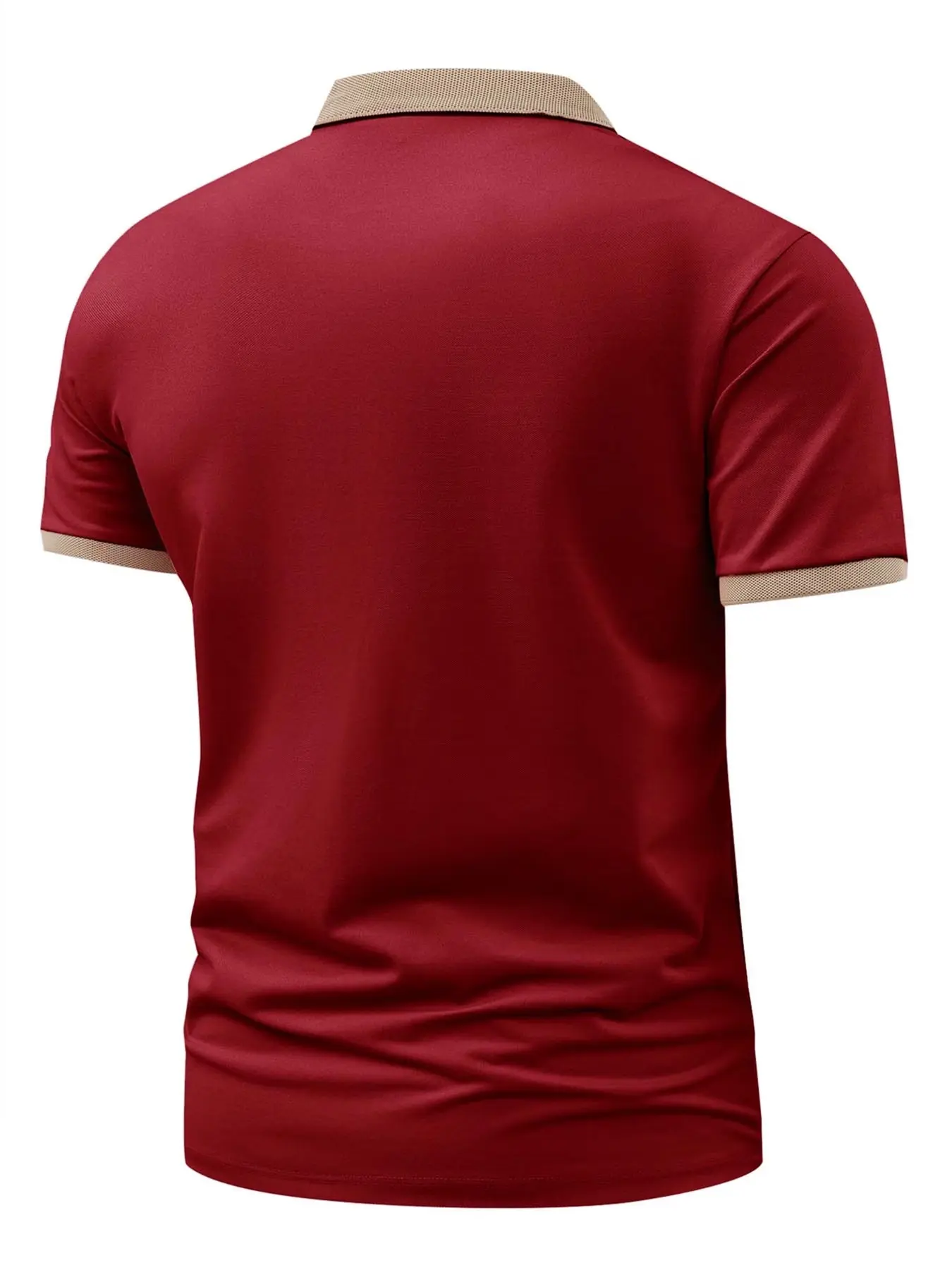 Trendy Versatile Golf Shirt, Summer Men's Retro Icon Logo Polo, Collar Button Casual Top, Short Sleeve Slim Fit, Spring & Fall