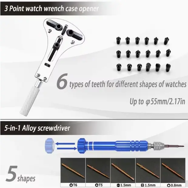·【VALUABLE TOOL KIT】The watch tool is made of 304 stainless steel and solid high-quality hard plastic, the watch press is made of cast iron, which makes it more strong and more durable. A penny saved is a penny earned, The watch repair kit helps you easily solve your watch problems at home, instead of going to the watch&jewelry store to deal with a small problem at a high cost.