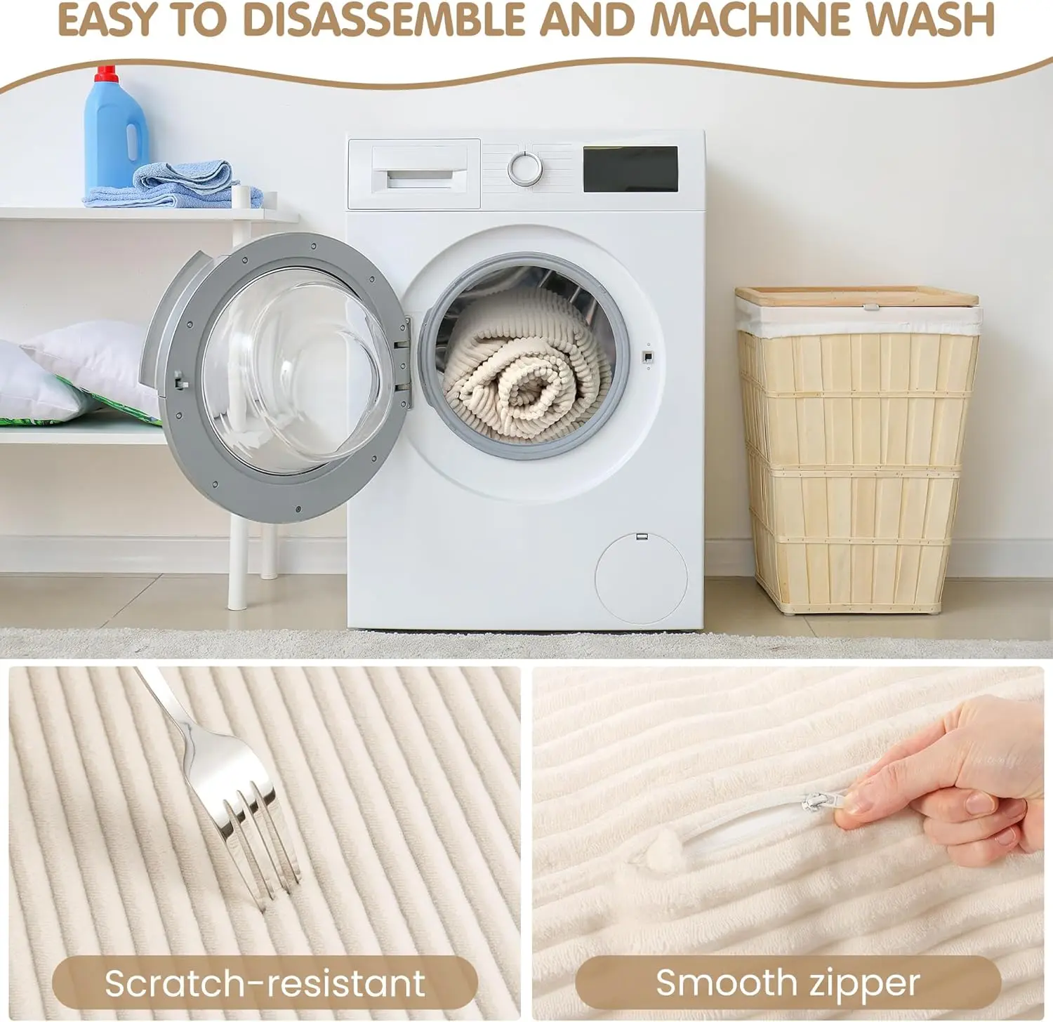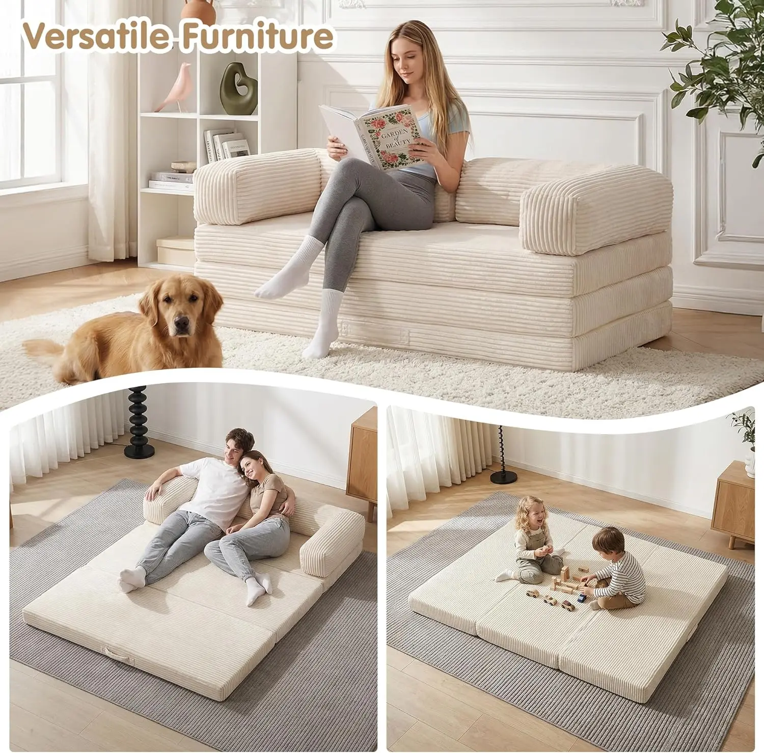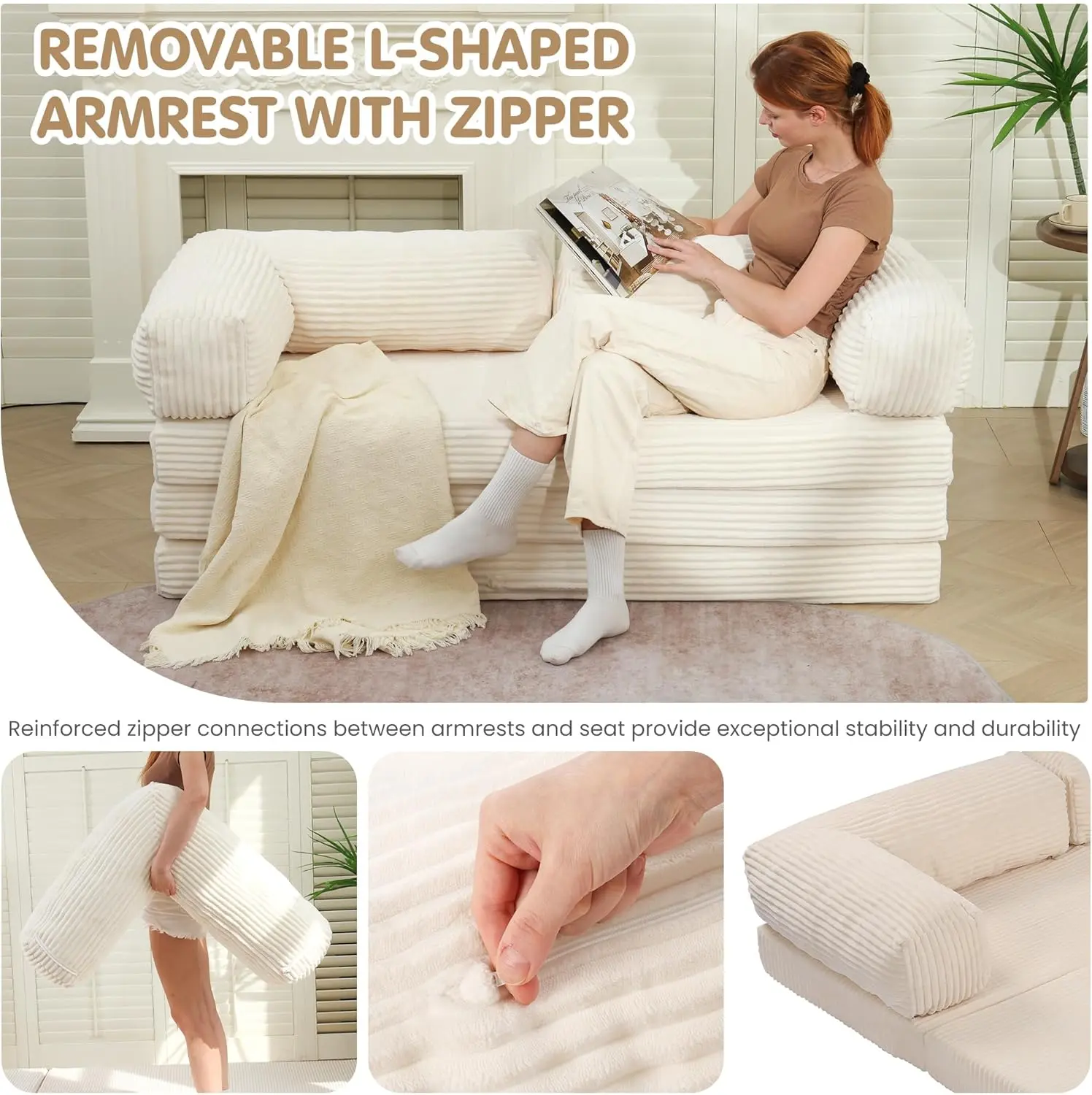 Winzoo 5-in-1 Convertible Sofa Bed,Boneless Couch Tri Folding Floor Mattress with Removable L-Shaped Armrests & Handle,Corduroy Futon Couch Sleeper with Pull Out Bed for Living Room Bedroom Apartment