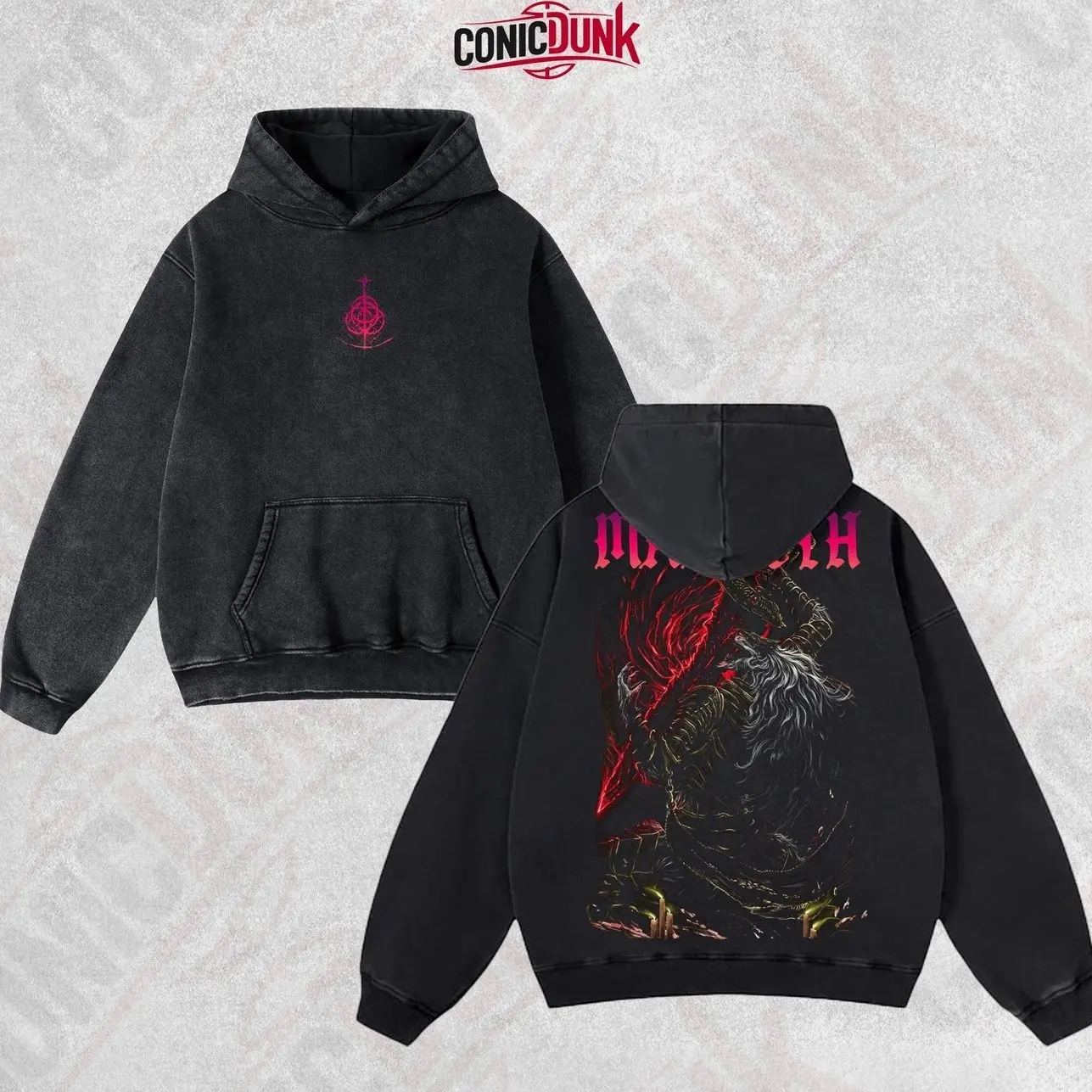 The Black Blade Maliketh 2.0 Elden Ring Oversized Heavyweight Cotton Washed Zip Up Hoodie, Retro Unisex Heavy Cotton Washed Zip Hoodie, Gift For Fans, Streetwear Y2K Top OBW