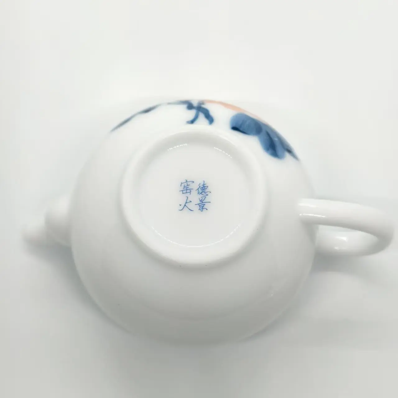 Looking for a gongfu teapot that puts Eastern poetry in your hands? This "National Beauty & Heavenly Fragrance" hand-painted peony blue and white teapot is your perfect choice! Centered on the peony, China’s "King of Flowers," artisans outline the branches and leaves with blue and white pigment, then use underglaze color to create the peony’s layered petals, with a gradient of red and pink that looks like a blooming flower. After firing at 1300℃, the pattern is permanently sealed beneath a transparent glaze—ensuring it never fades or wears off, even after thousands of uses. The surface feels as smooth and gentle as jade.