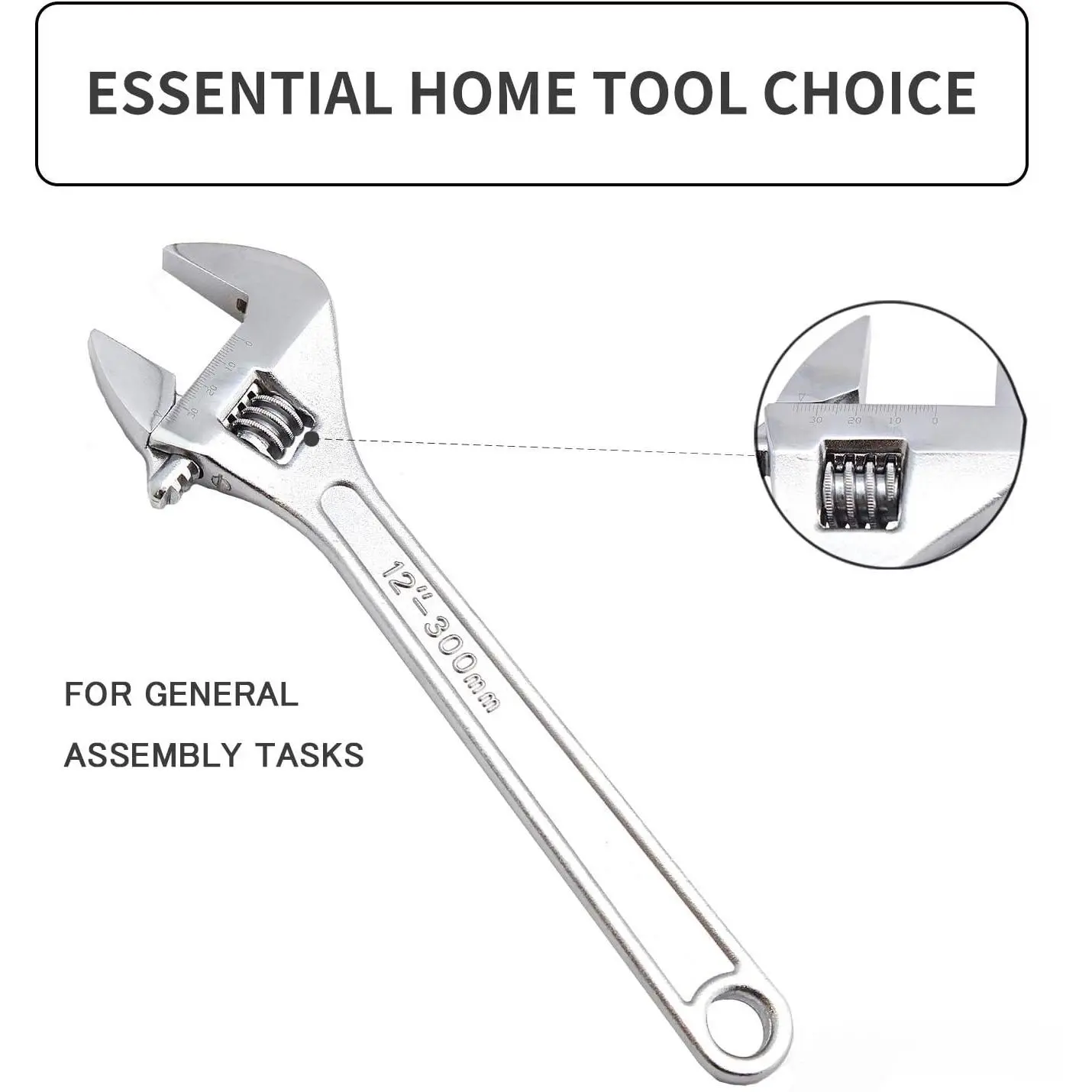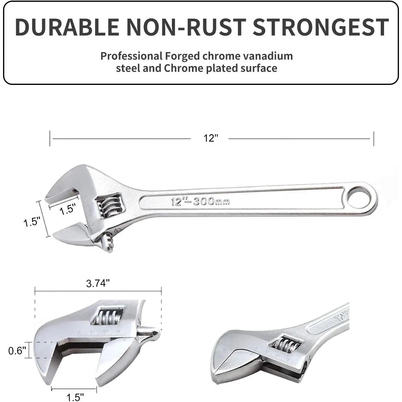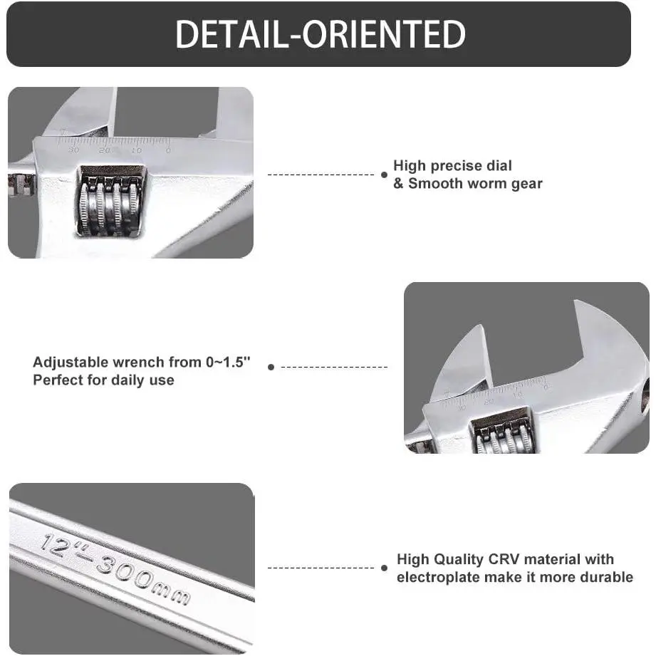 5. 12 Inch Adjustable Wrench Professional Hand Tool CR-V Steel Crescent Wrench