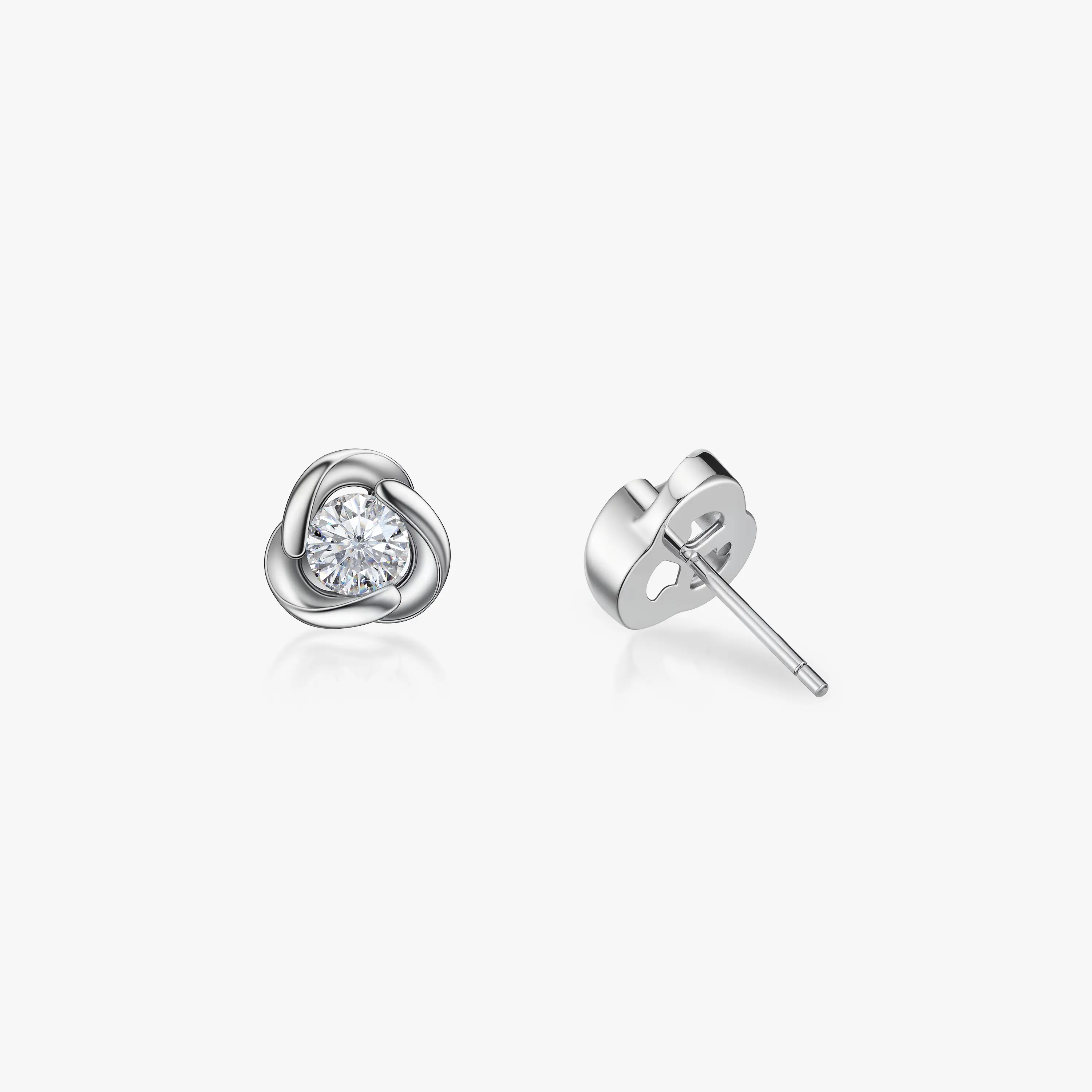 These heart knot stud earrings beautifully wrap a radiant 1ct moissanite at the center—representing a love that is both strong and enduring. The soft, flowing curves create a modern heart silhouette, gently embracing the stone and enhancing its sparkle.