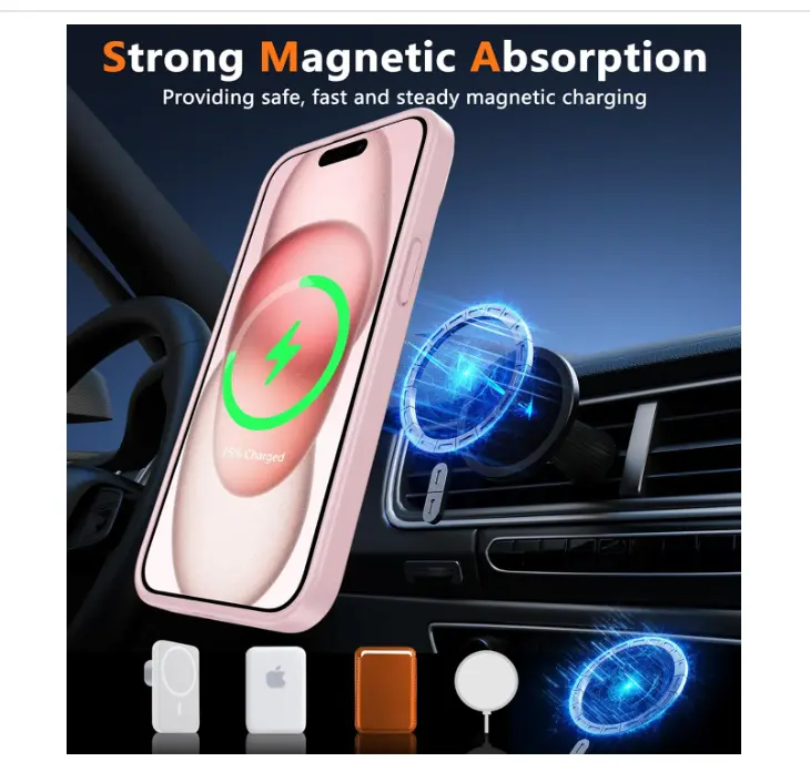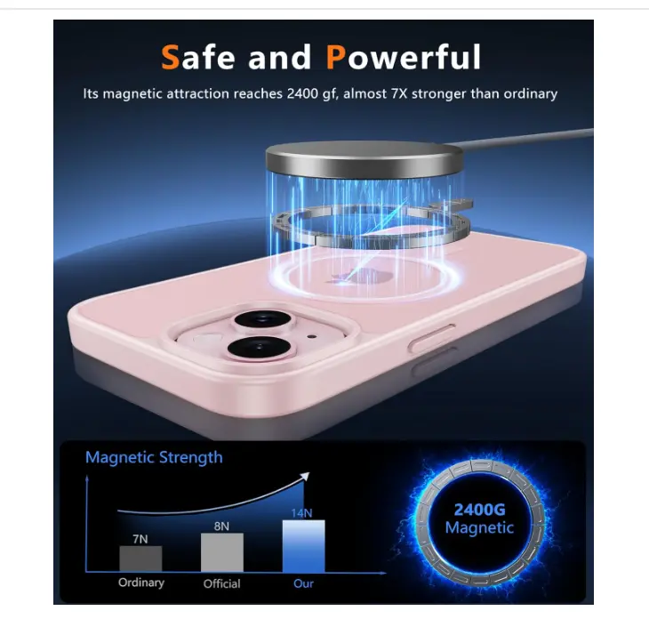 ·Strong Magnetic Charging: Fit for Magnetic chargers and other Wireless chargers. This iPhone 15 Case has built-in 38 super N52 magnets. Its magnetic attraction reaches 2400 gf, which is almost 7X stronger than ordinary, therefore it won't fall off no matter how it shakes when you are charging. Aligns perfectly with wireless power bank, wallets, car mounts and wireless charging stand