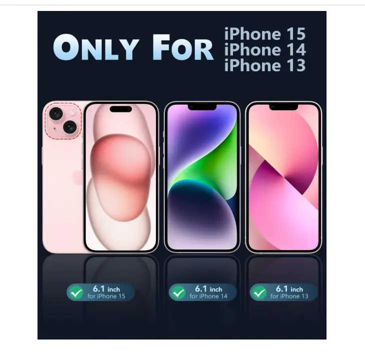 ·Compatibility: This case only Fits for iPhone 15 (6.1 inch, Released in 2023), iPhone 14 (6.1 inch, Released in 2022), iPhone 13 (6.1 inch, Released in 2021). Please confirm your phone model before purchasing