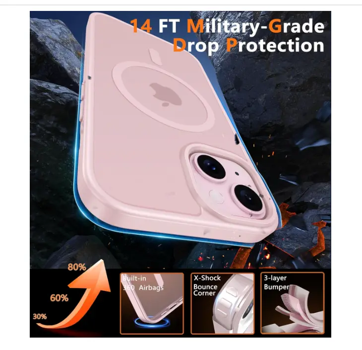 ·14FT Military Grade Drop Protection: Our iPhone 14 Case backplane is made with rigid polycarbonate and flexible shockproof TPU bumpers around the edge and features 4 built-in corner Airbags to absorb impact, which can prevent your Phone from accidental drops, bumps, and scratches