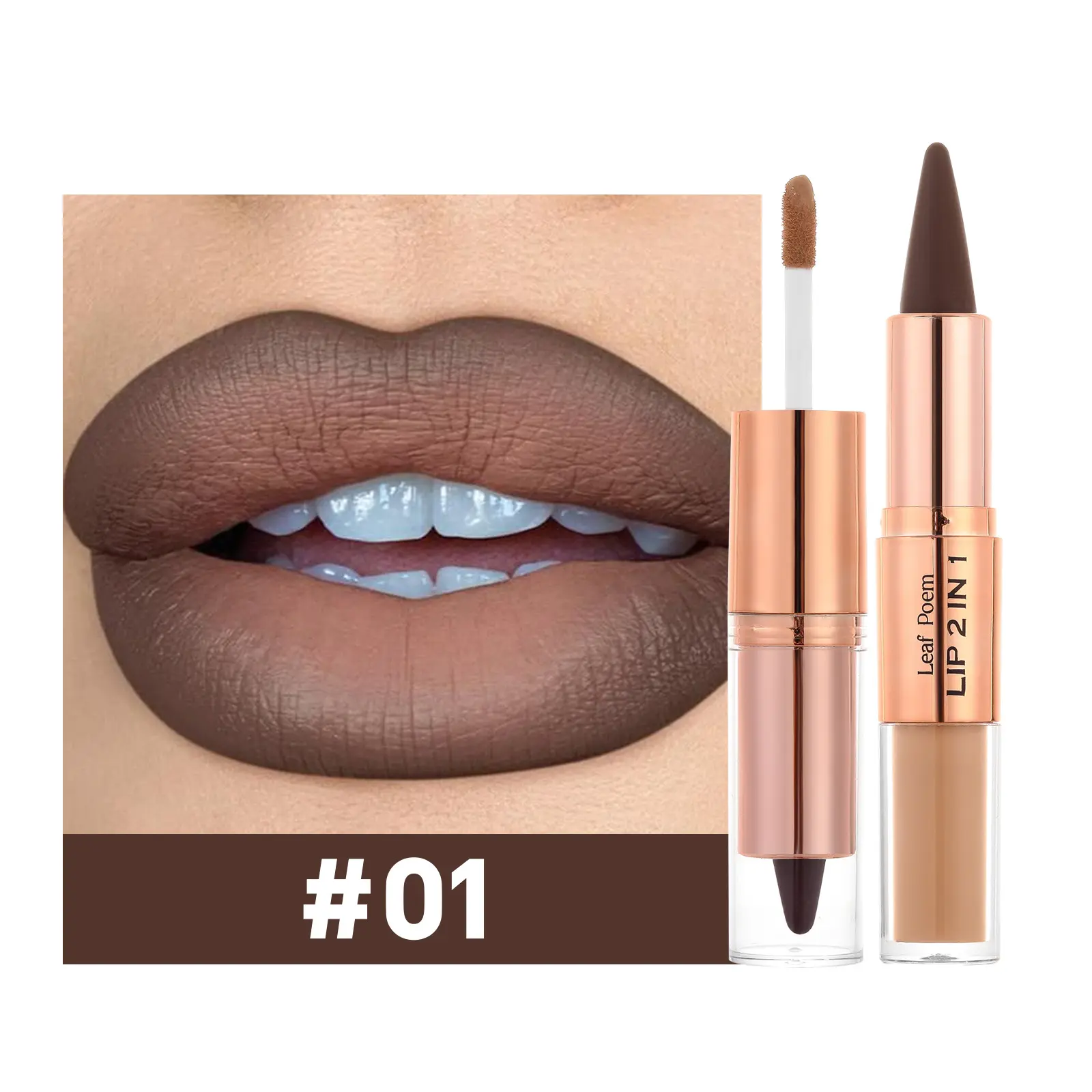 Dual-ended two-in-one lipstick and lip liner, matte non-stick cup non-fading pearlescent lip gloss, long-lasting matte lipstick