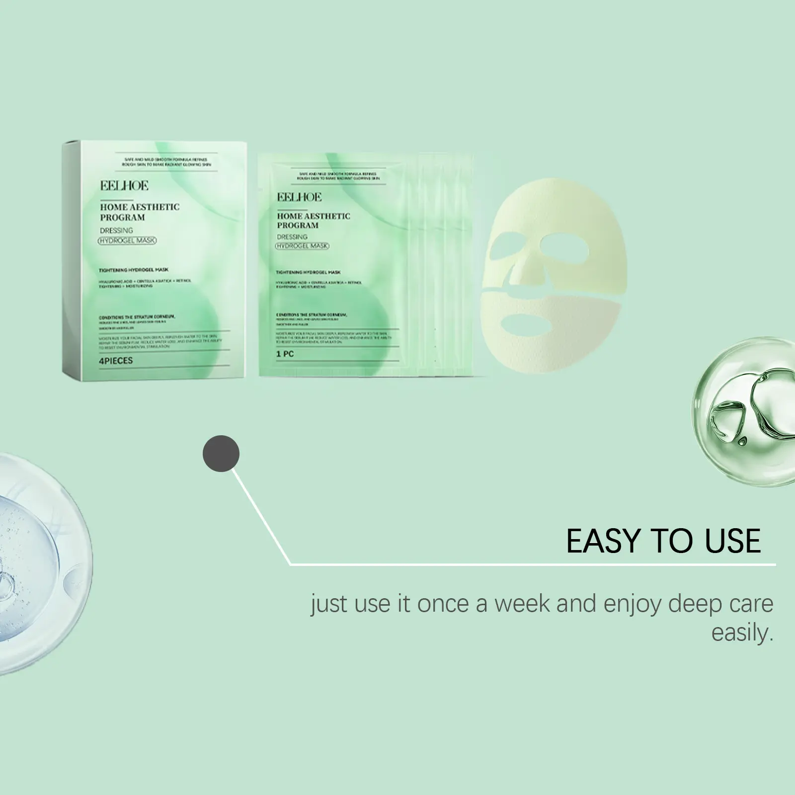 EELHOE Retinol Hydrating Sheet Mask Box Set (4 Sheets), Anti-Aging Facial Mask for Glass Skin, Wrinkle Cream Results for Firming & Pore Tightening, K-beauty Sleeping Mask, Korean Skincare TikTok Exclusive Bundle, Gentle Radiant Dewy Skin Care, 4 Pcs