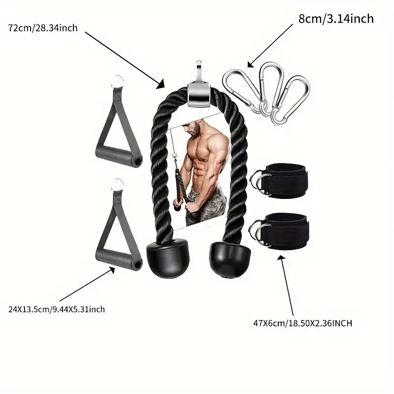 Professional 3 Head Muscle Rope, 7pcs/set Multifunctional Lat Pull Down Attachment, Resistance Band Handle, Ankle Strap, Wrist Strap, Exercise Machine Accessories