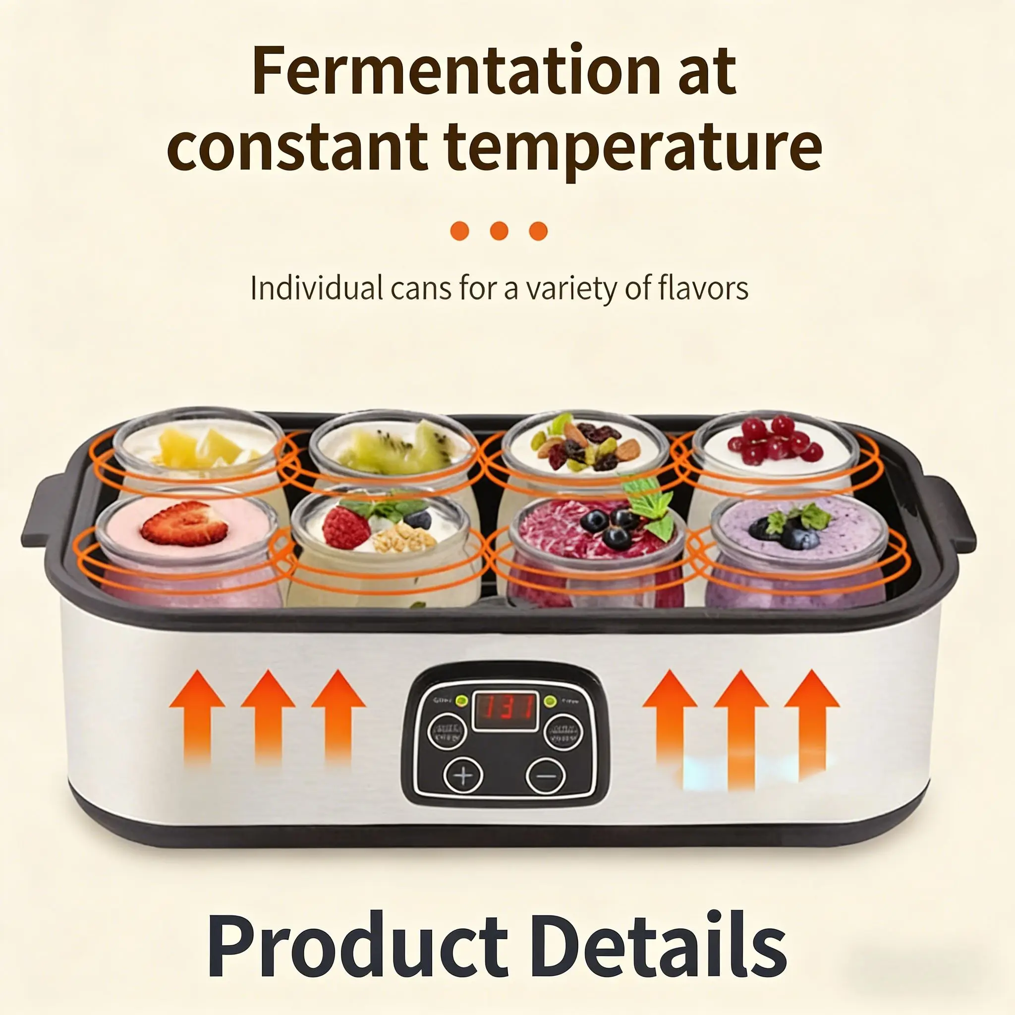 Stainless Steel Yogurt Machine with 8 Jars & 5 FREE Gifts for Healthy Home Cooking