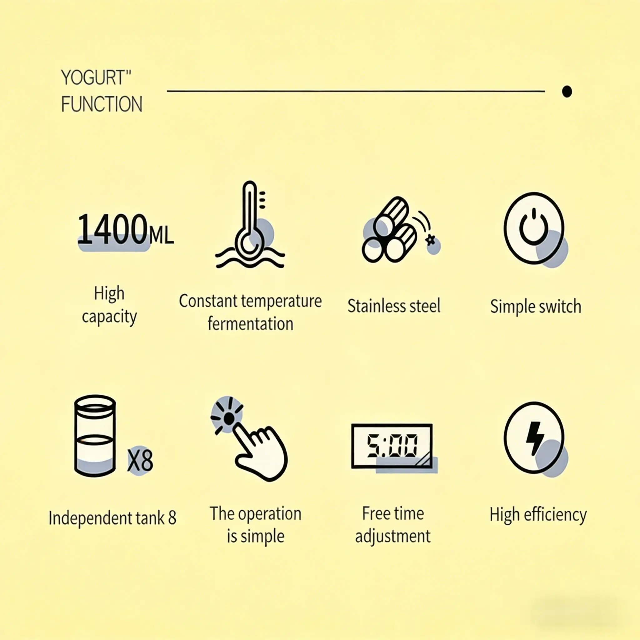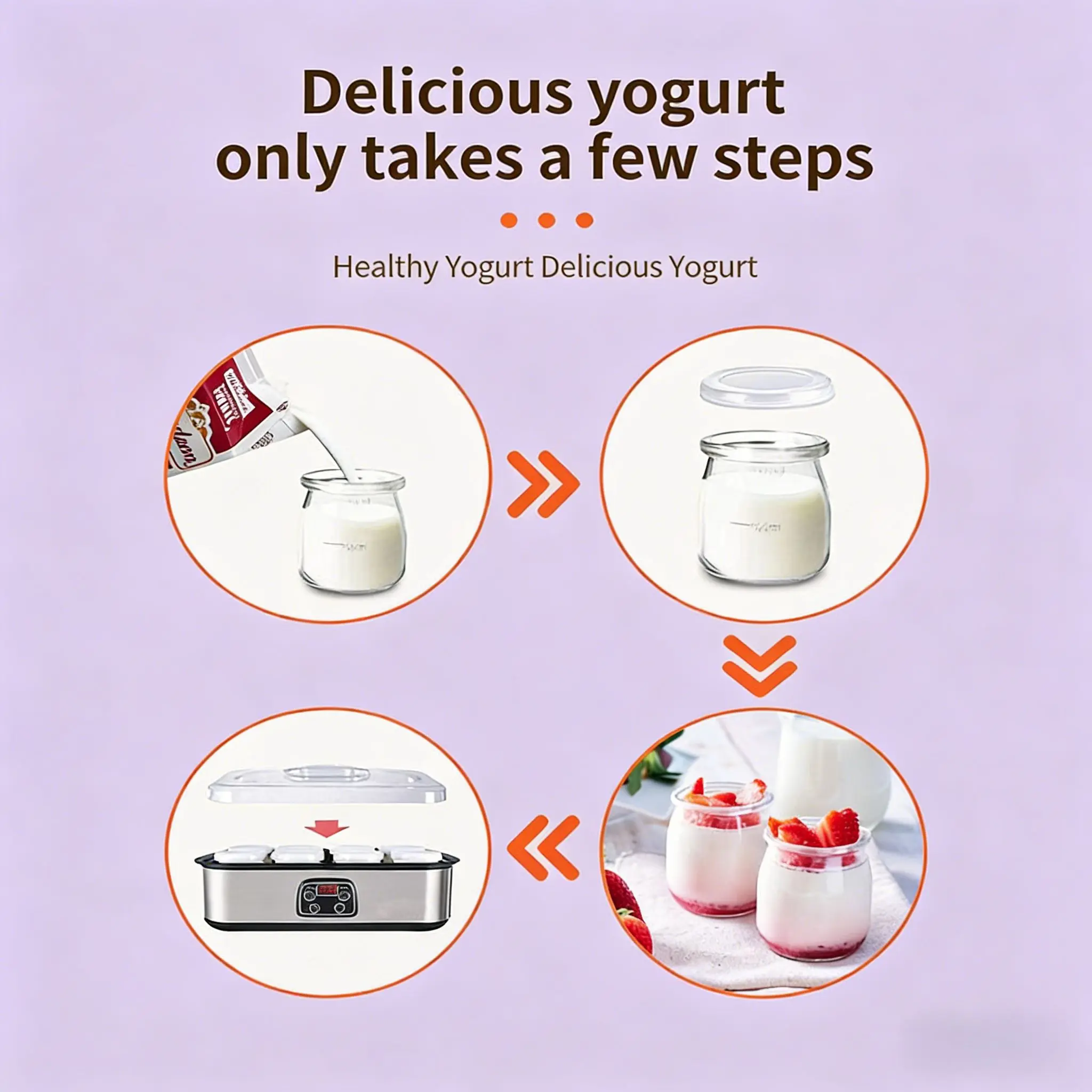 Enjoy fresh, homemade yogurt every day with this durable stainless steel yogurt machine. Designed for easy, consistent fermentation, it helps you make healthy, sugar-free probiotic yogurt right in your own kitchen.