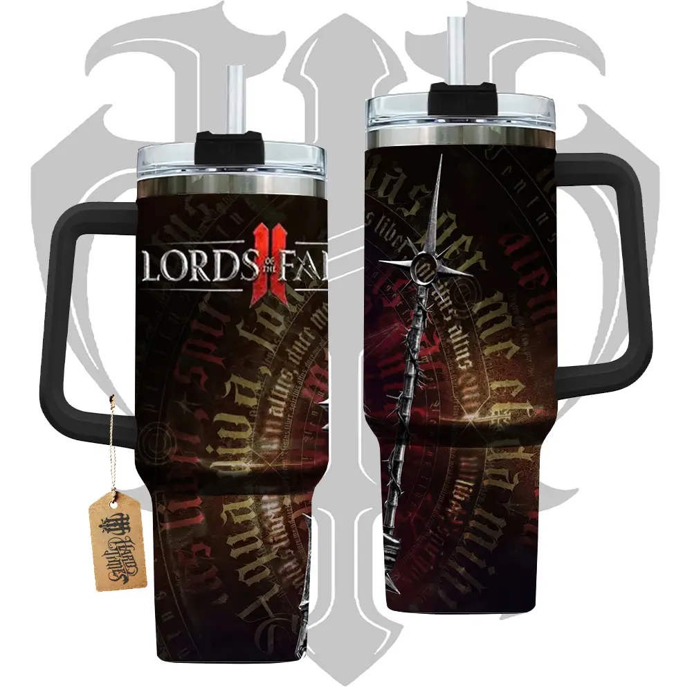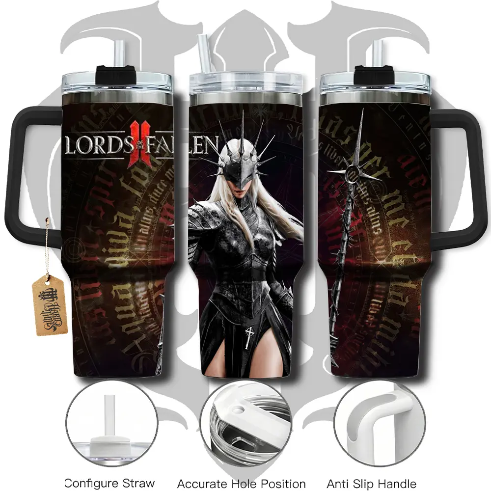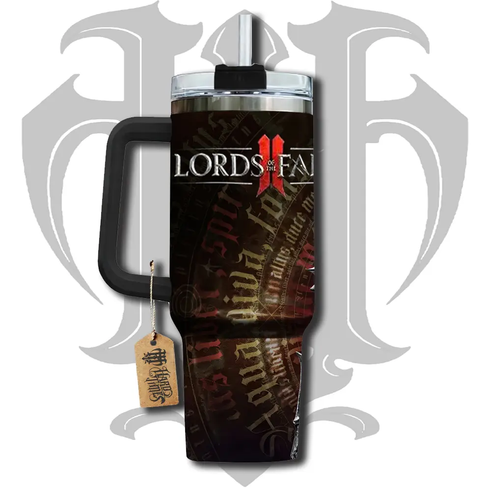 HardTimesMerch - Lords of the Fallen II #2 40oz Handle Tumbler Stainless Steel Travel Mug, Game Inspired Vacuum Insulated Cup, Large Iced Coffee Tumbler, Manga Fighter Drinkware, Gamer Gift for Him Her