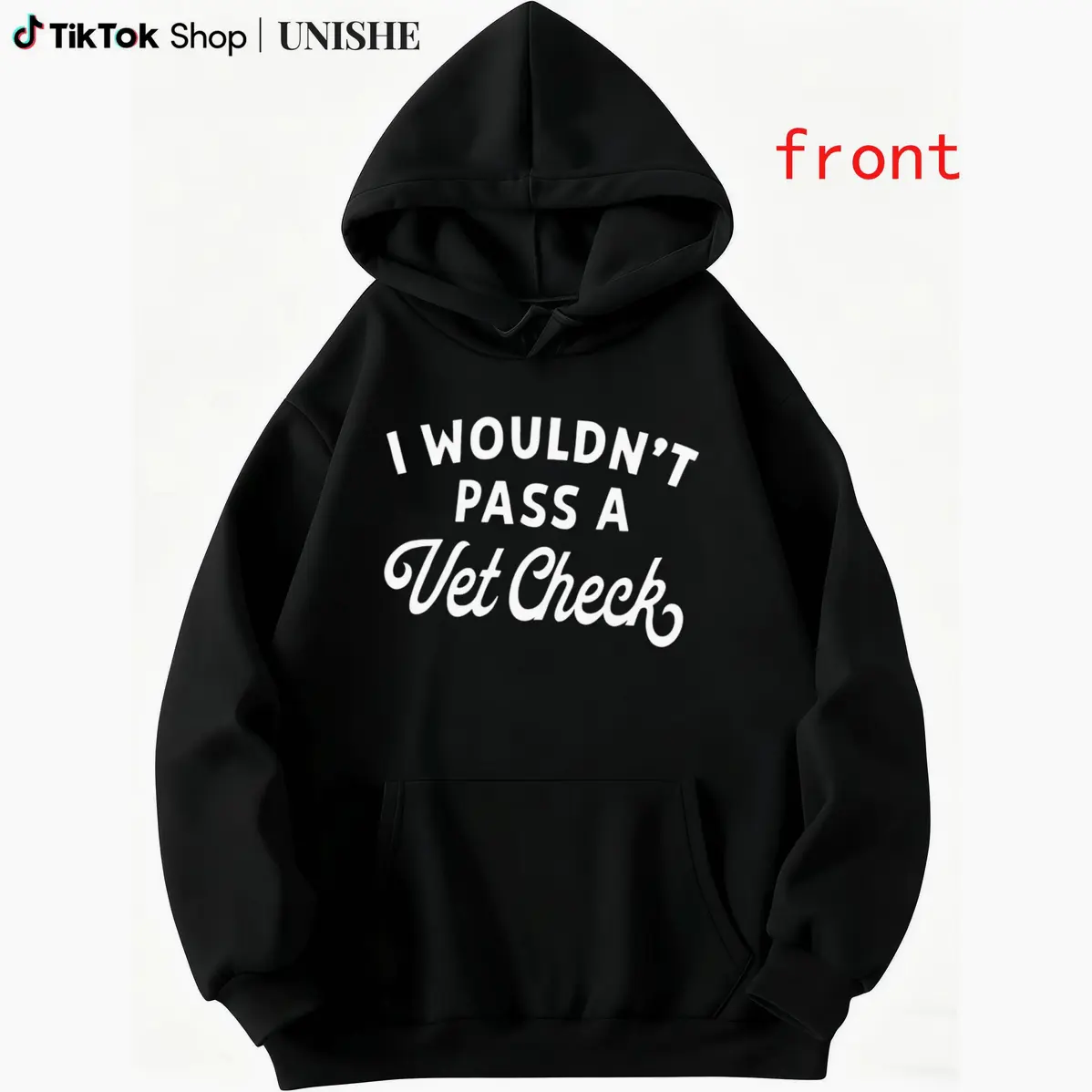 Horse Riding Hoodie With I Wouldn't Pass A Vet Check Quote – Gift Idea Hoodied Everyday Cotton Sweaters