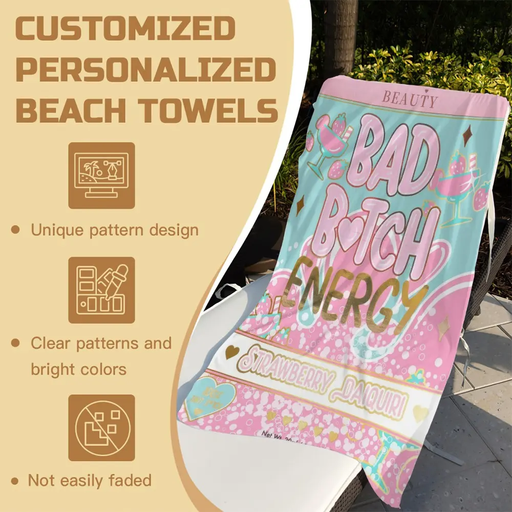 Bad B*tch Energy Beach Towel, Oversized Cute Print Pool Towel, Quick Dry Sand Free Camping Towel, Soft Absorbent Bath Towel Blanket, Summer Beach Pool Essential, Perfect Travel Gift