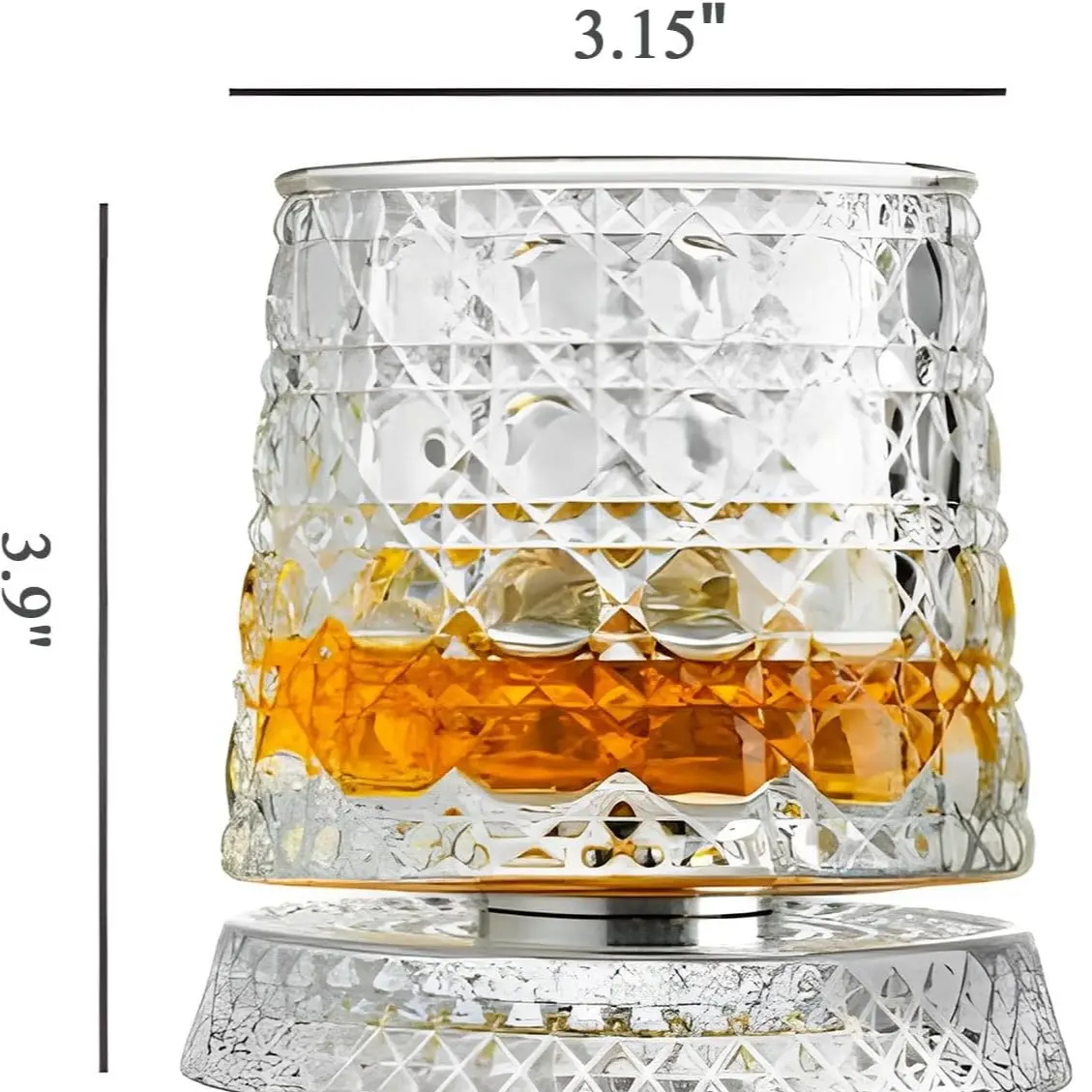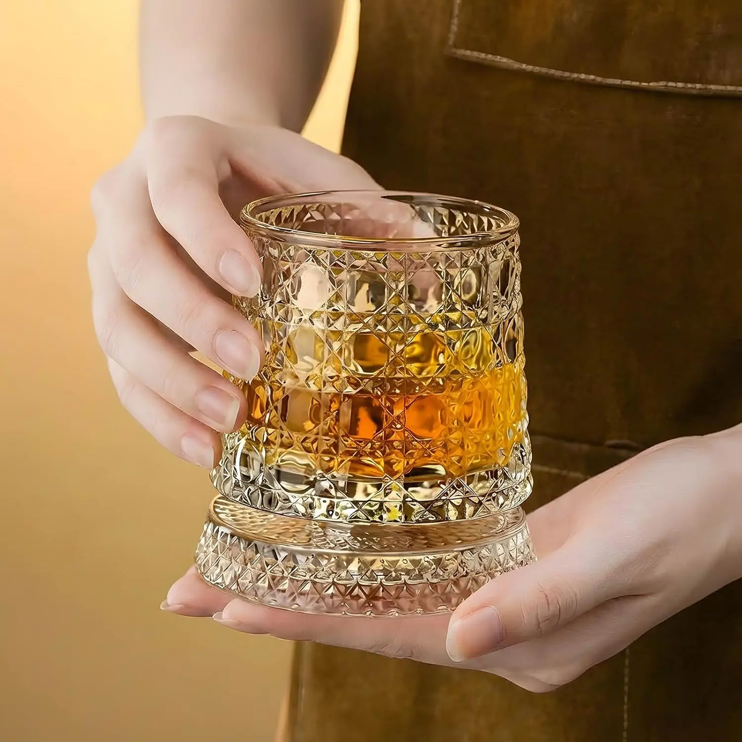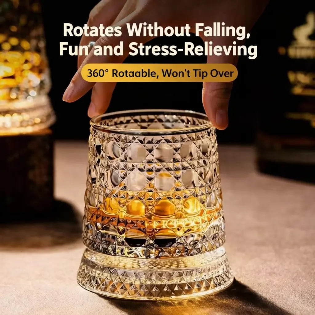 ·360° Rotating DesignThis whiskey glass features a 360-degree rotating design that brings a fun and eye-catching drinking experience. Gently spin the glass to enjoy dynamic light and shadow effects while adding more relaxation and enjoyment to your drink time.