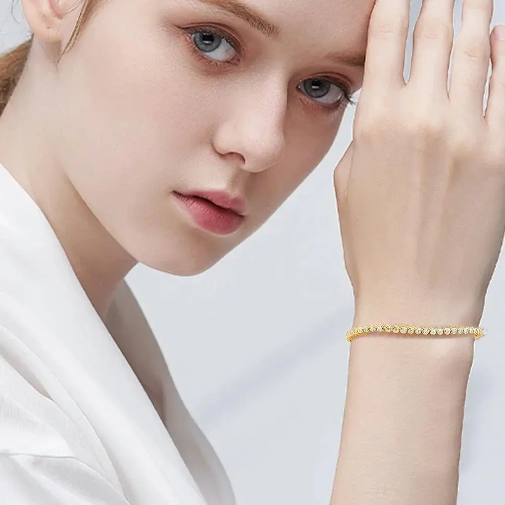 2/3mm Certified Moissanite Tennis Bracelet for Women 925 Sterling Silver Round Bubble Bezel Setting Diamond Bracelets Bangle