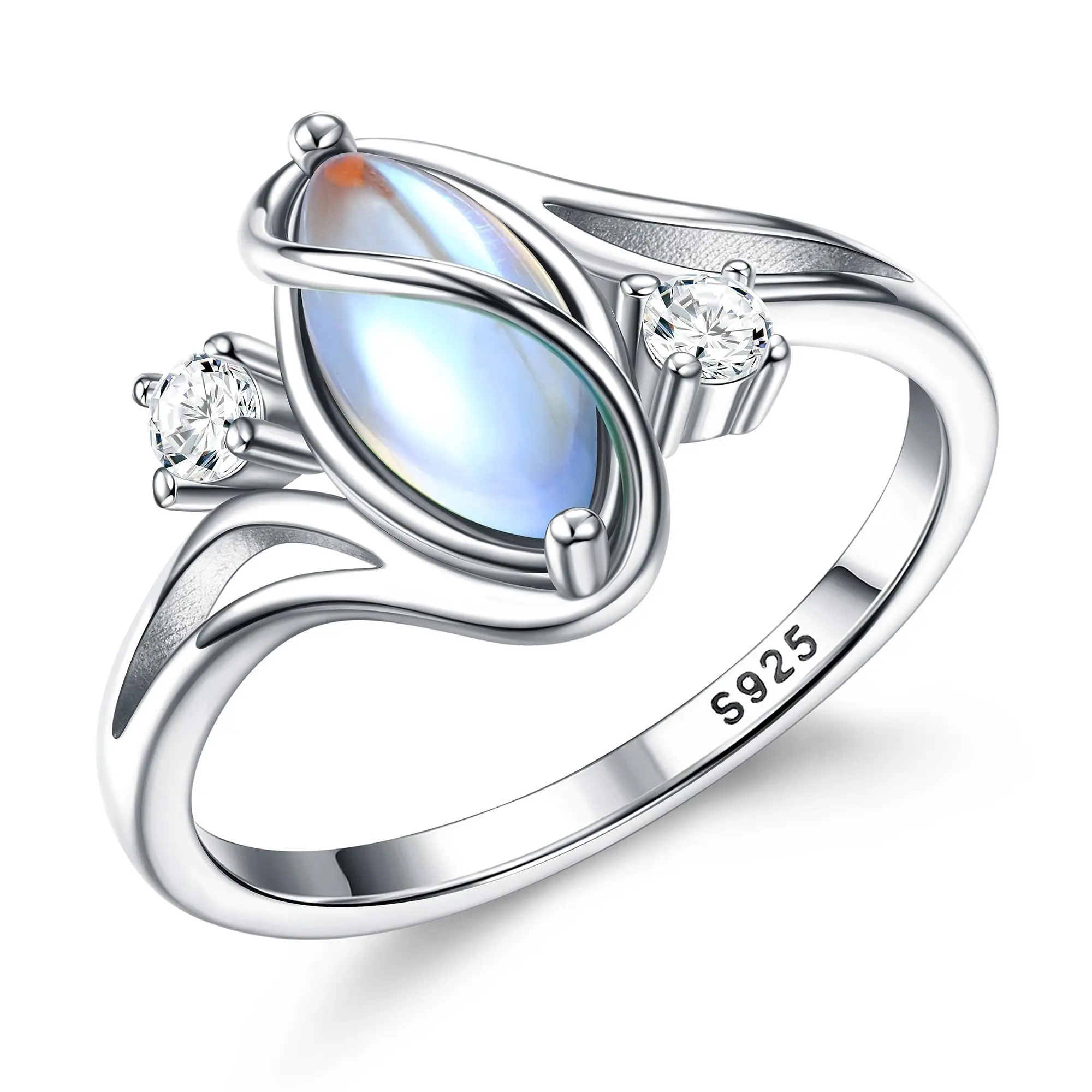 HXS 925 Sterling Silver Moonstone Ring That Glows Like Magic