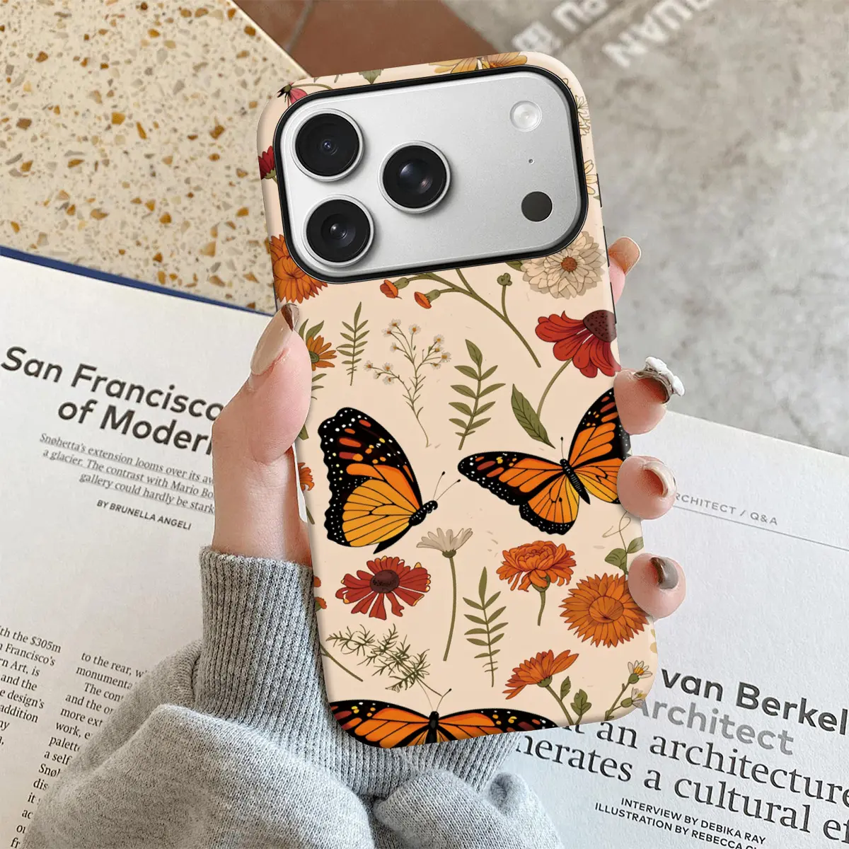 Cottagecore Wildflower Butterfly Design Fashion Phone Case 2 in 1 Case for iPhone 17 Pro Max/16 Pro Max /15Pro Max 15/14/13/12 & Samsung S26 /S25Ultra for Girls