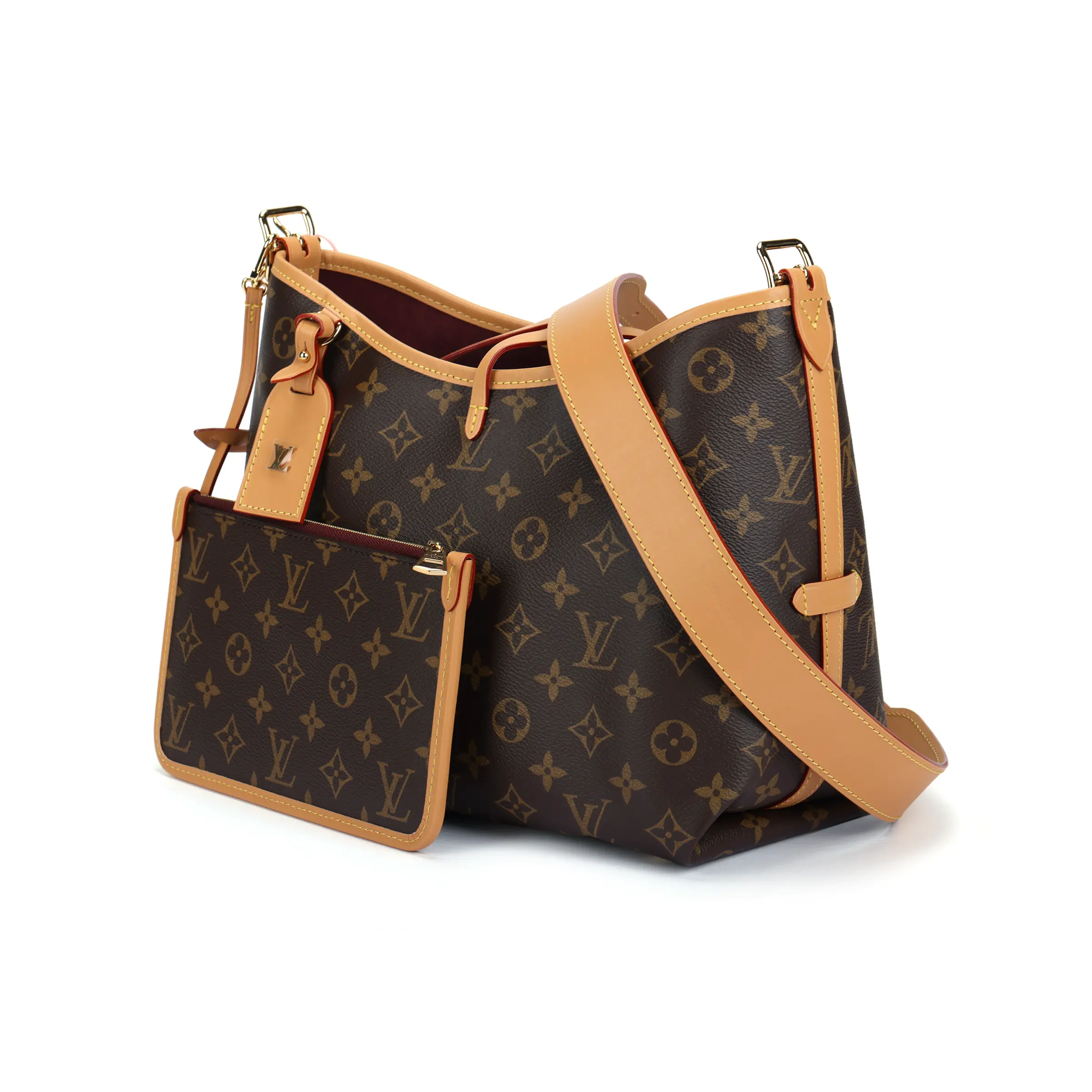 Combining allure with body-friendly design, the CarryAll PM handbag in Monogram canvas with natural leather trim is a go-everywhere city bag. Great storage capacity and a smartly designed interior, with two large inside pockets, makes it practical. A detachable zipped pouch, also in Monogram canvas, is attached to the bag by a leather strap.
