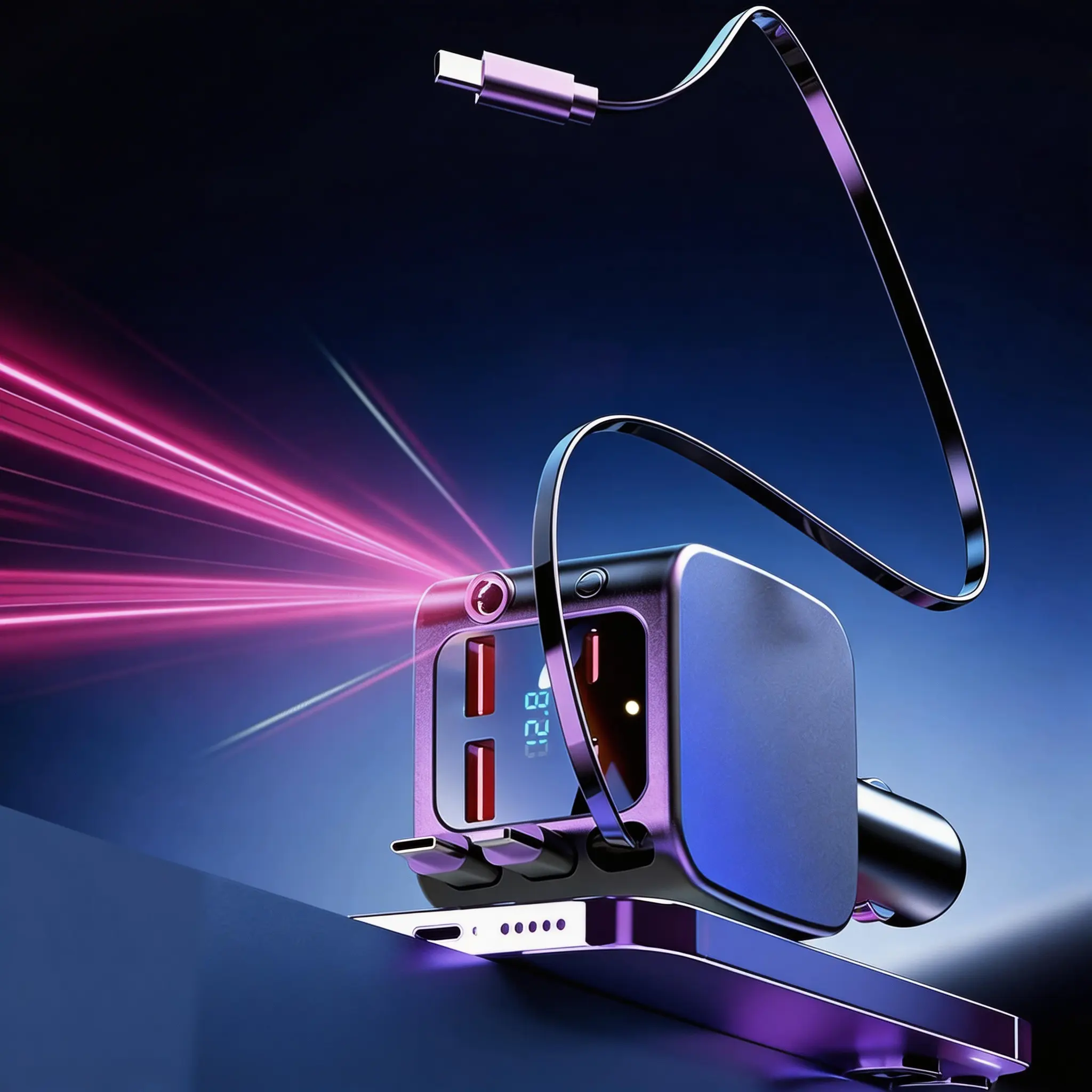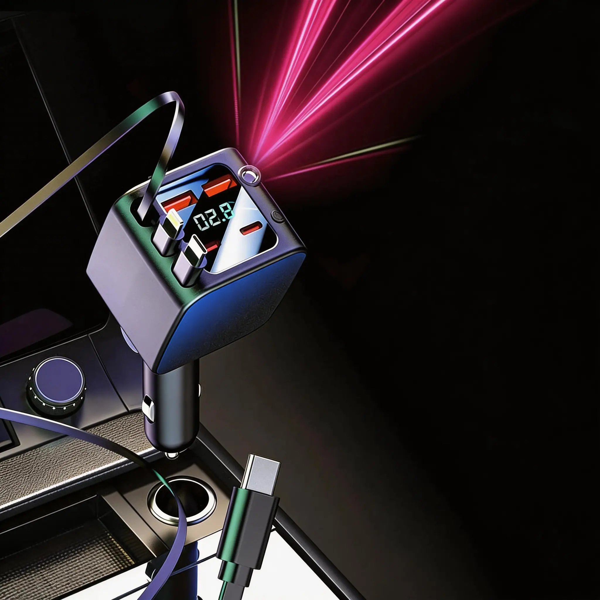 7-in-1 Ultimate Car Charger! Level up yourdrive with 60W Starlight projection, retractablecables for zero mess, and 3.1A fast charging.Real-time voltage monitoring keeps your ridesafe. Must-have car gadget for 2026