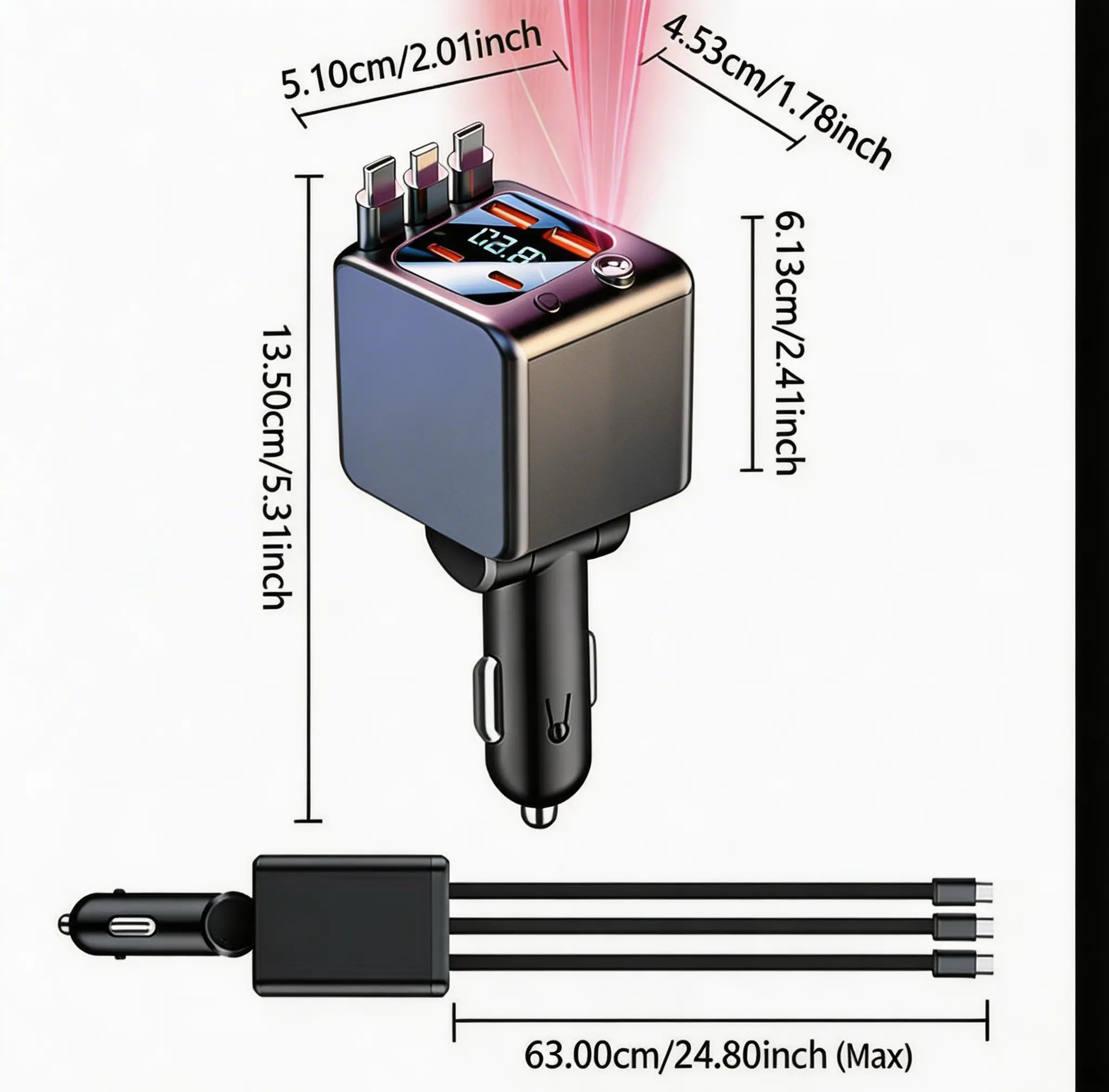· Power Up Your Drive: This 7-in-1 car charger offers60W Starlight projection for a dazzling drive. It includesretractable cables to ensure zero mess.