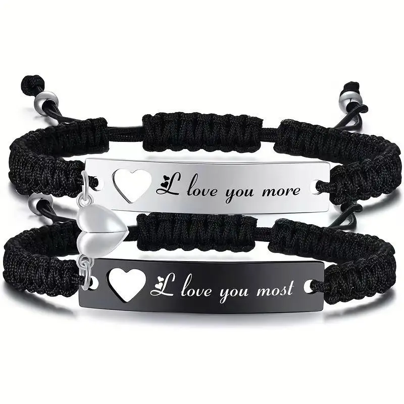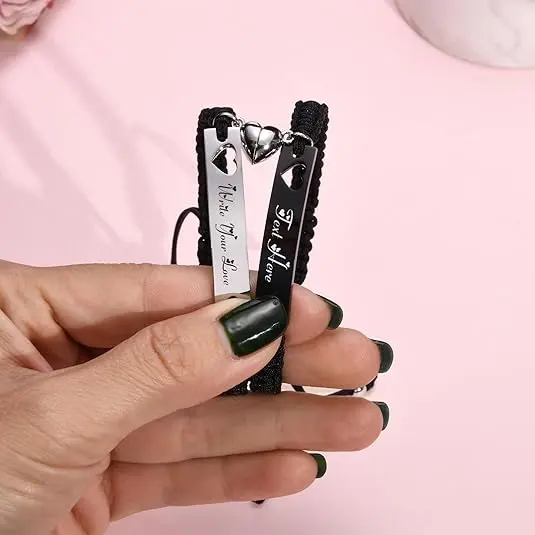 ·Boyfriend Girlfriend Bracelets Size:Made of superior stainless steel with exquisite workmanship and polishing technique,nulon rope braided,adjustable bracelet length:6.3-9 inches, eye-catching and easy matching. Perfectly safe to wear and won't cause any allergy or irritation to your skin.
