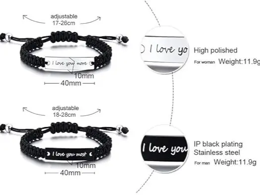 ·Matching Bracelets for Couples:This is a set of two braided rope bracelets, one for him and one for her. They are made of durable, high-quality materials and feature a stylish design. They are the great way to show your loved one how much you care.