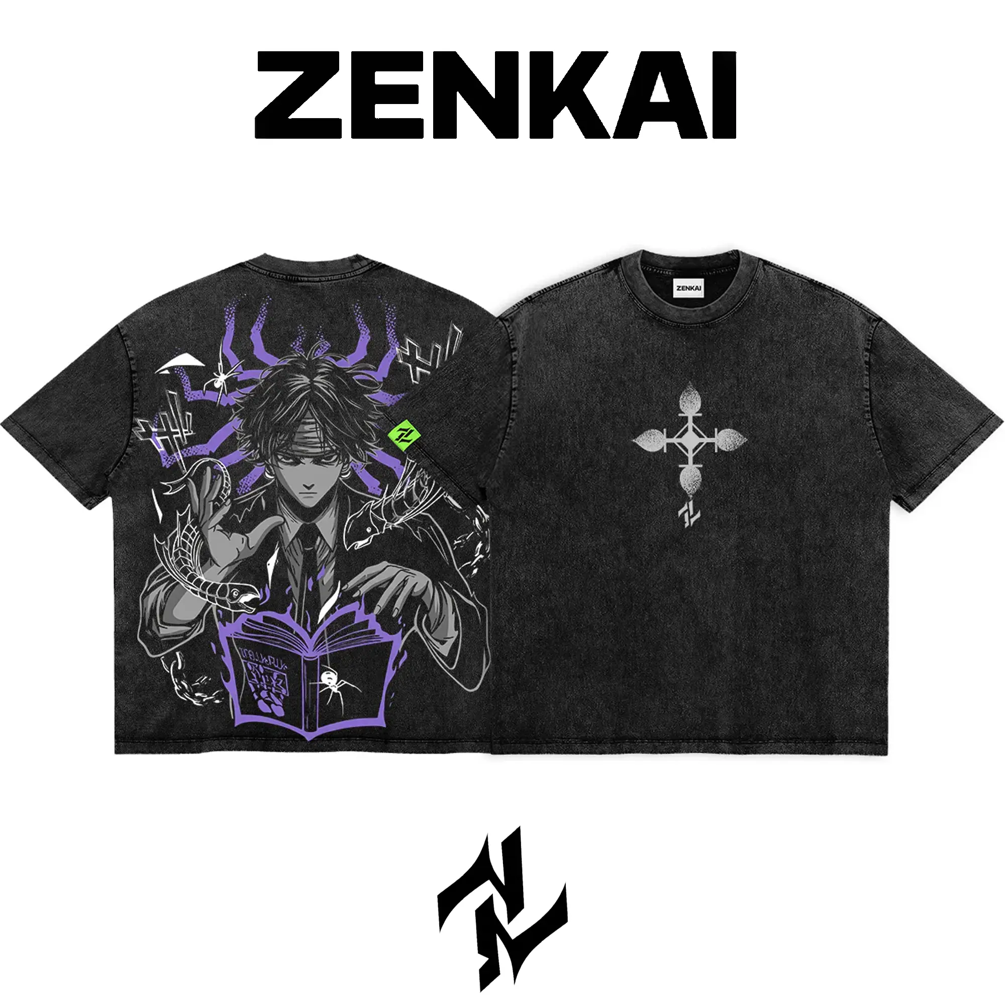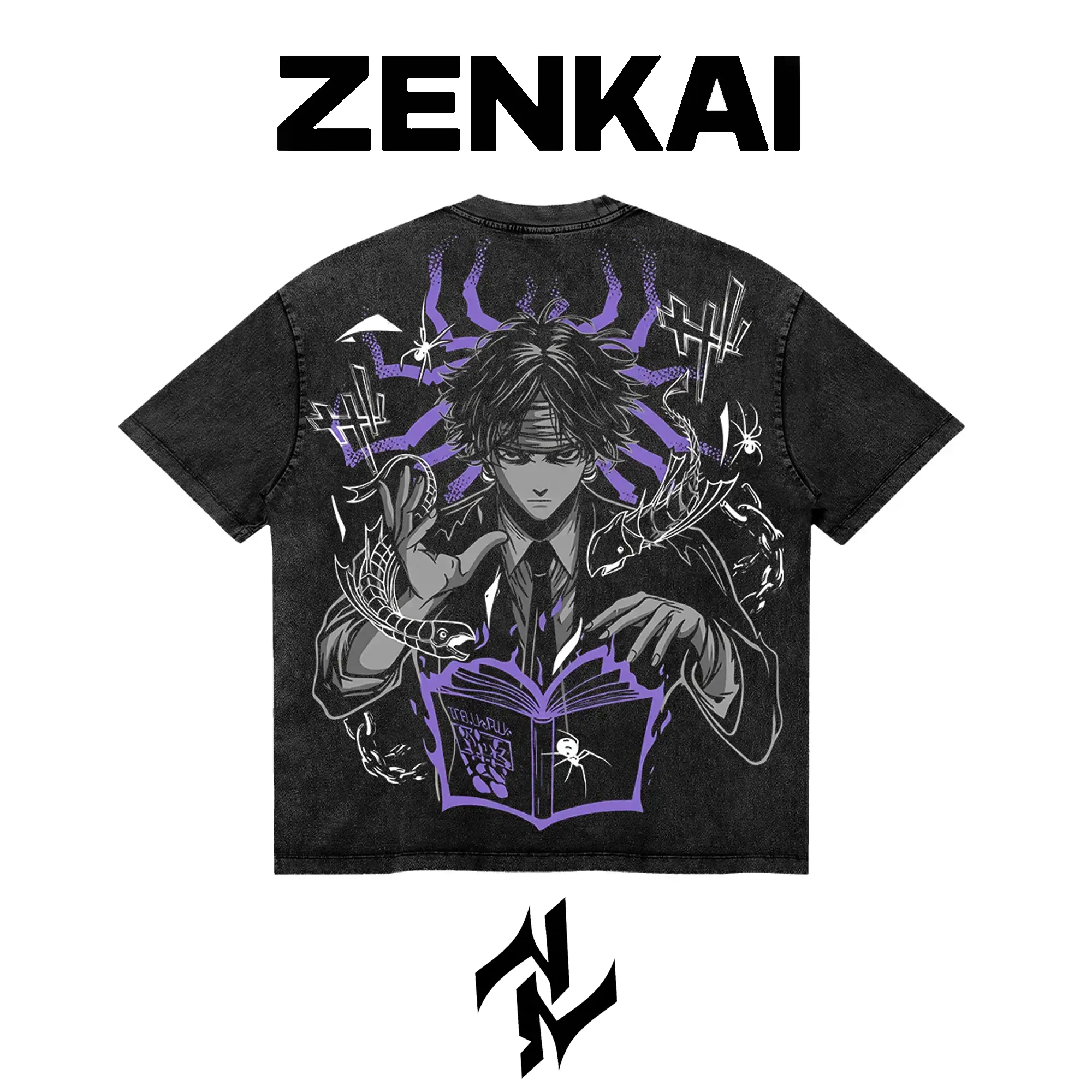Chrollo Lucilfer Hunter x Hunter Graphic Tee Double Sided Print Oversized Acid-Washed Heavyweight Cotton T-Shirt – Unisex Anime Manga Tee, Perfect Gift for Anime Fans and Lovers Menswear Tops