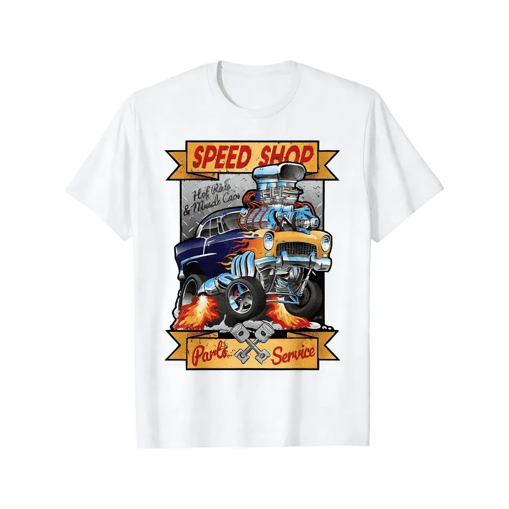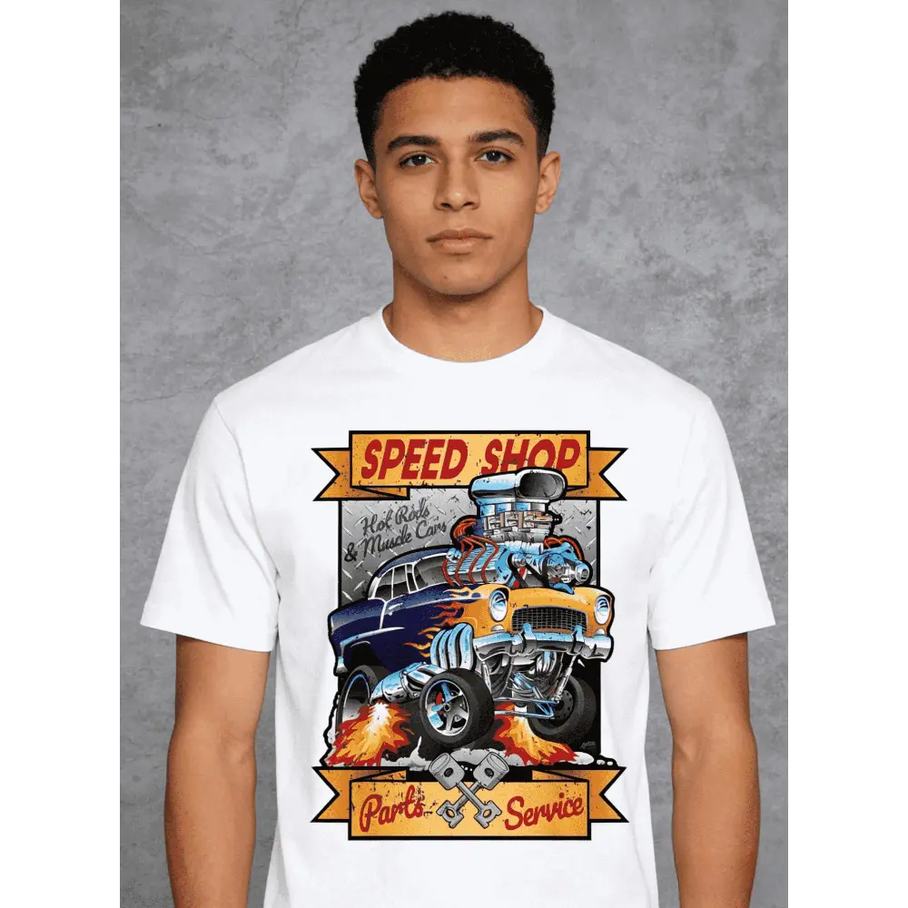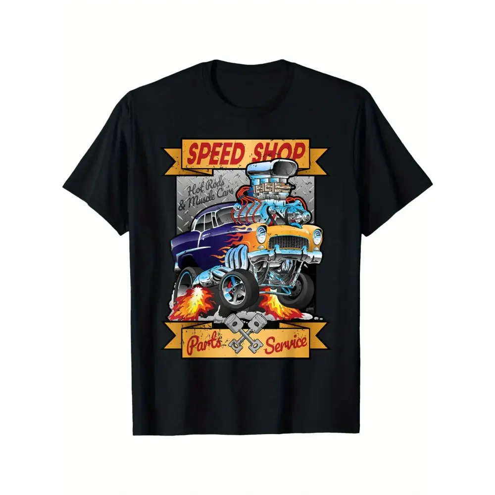 Speed Shop Hot Rods Muscle Cars T-Shirt, Vintage Retro Car Guy Graphic Tee, Classic American Gasser Drag Racing Shirt for Men, Auto Mechanic Garage Apparel, Car Enthusiast Gift, Oversized Streetwear, US Size S-5XL