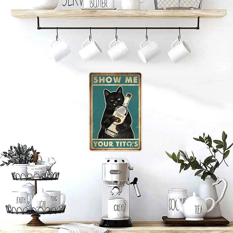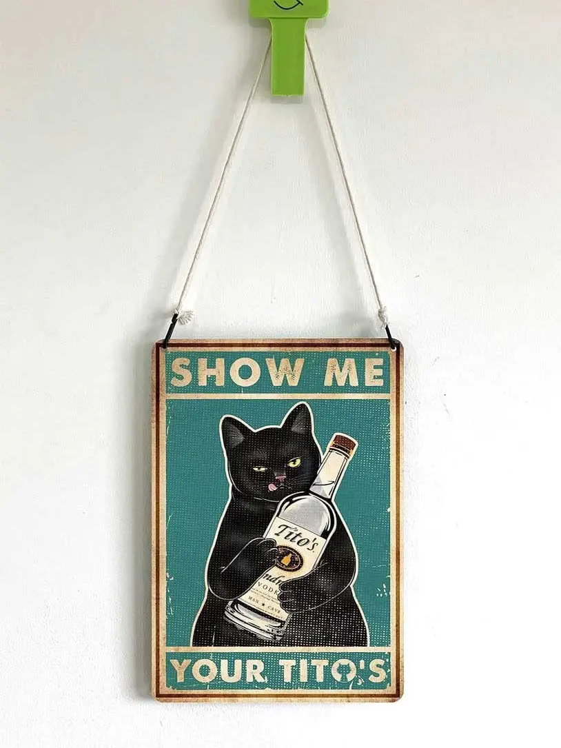 Funny Show Me Your Tito's Black Cat Poster Man Cave Sign Vintage Bar Sign Bar Wall Decor 12" * 8"
