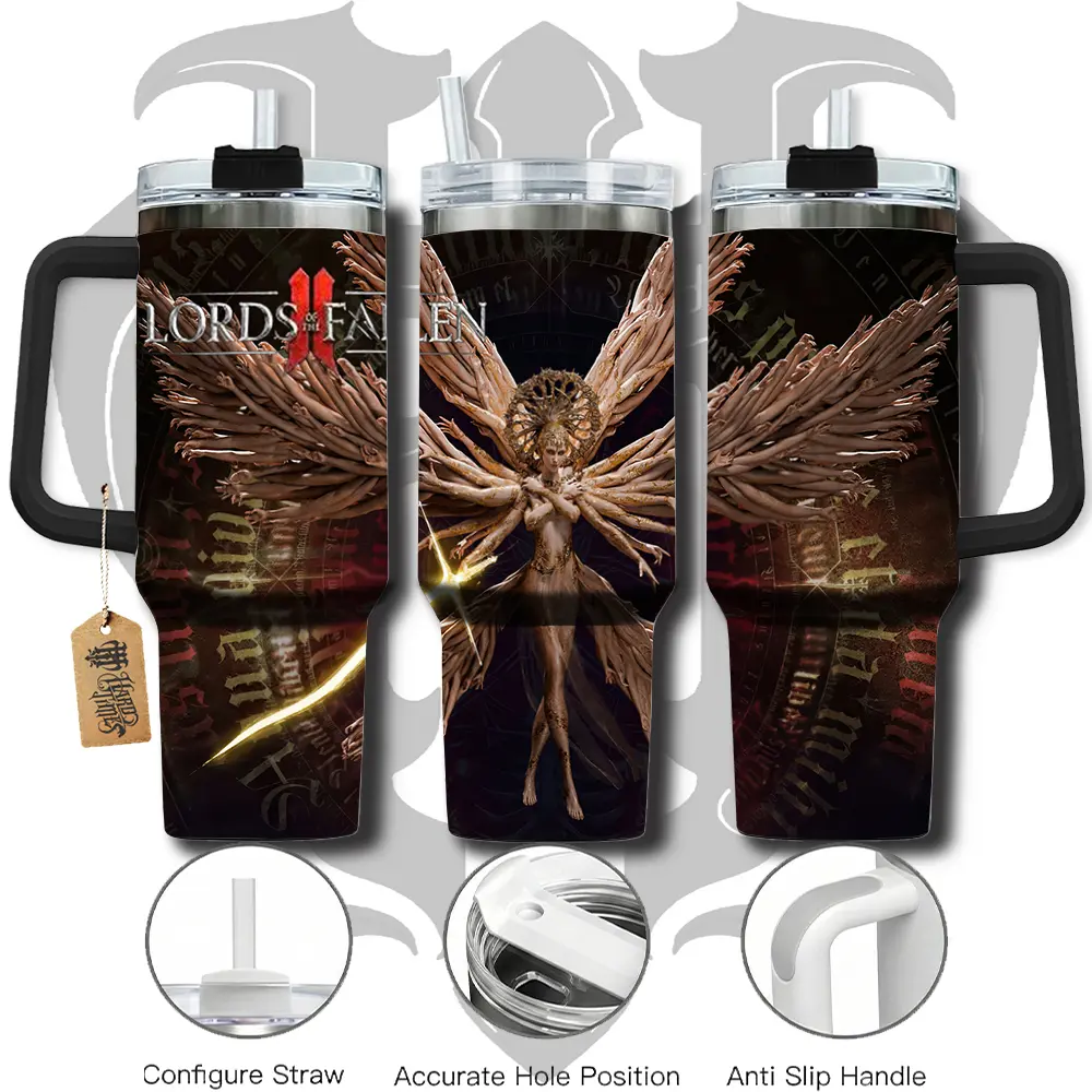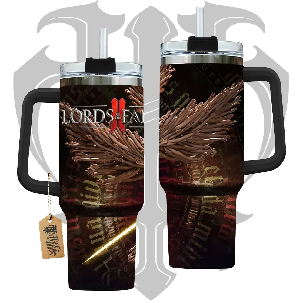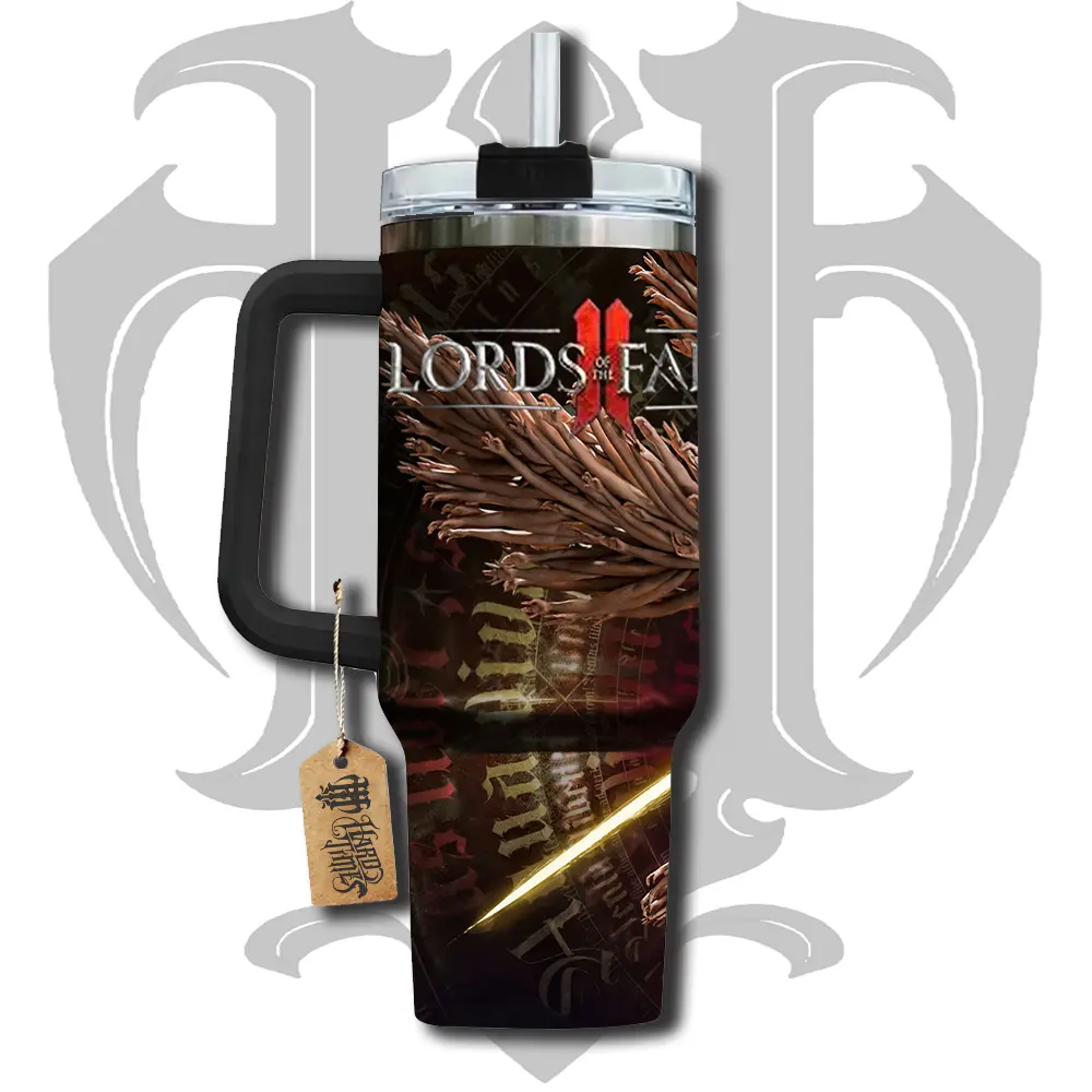 HardTimesMerch - Lords of the Fallen II #3 40oz Handle Tumbler Stainless Steel Travel Mug, Game Inspired Vacuum Insulated Cup, Large Iced Coffee Tumbler, Manga Fighter Drinkware, Gamer Gift for Him Her